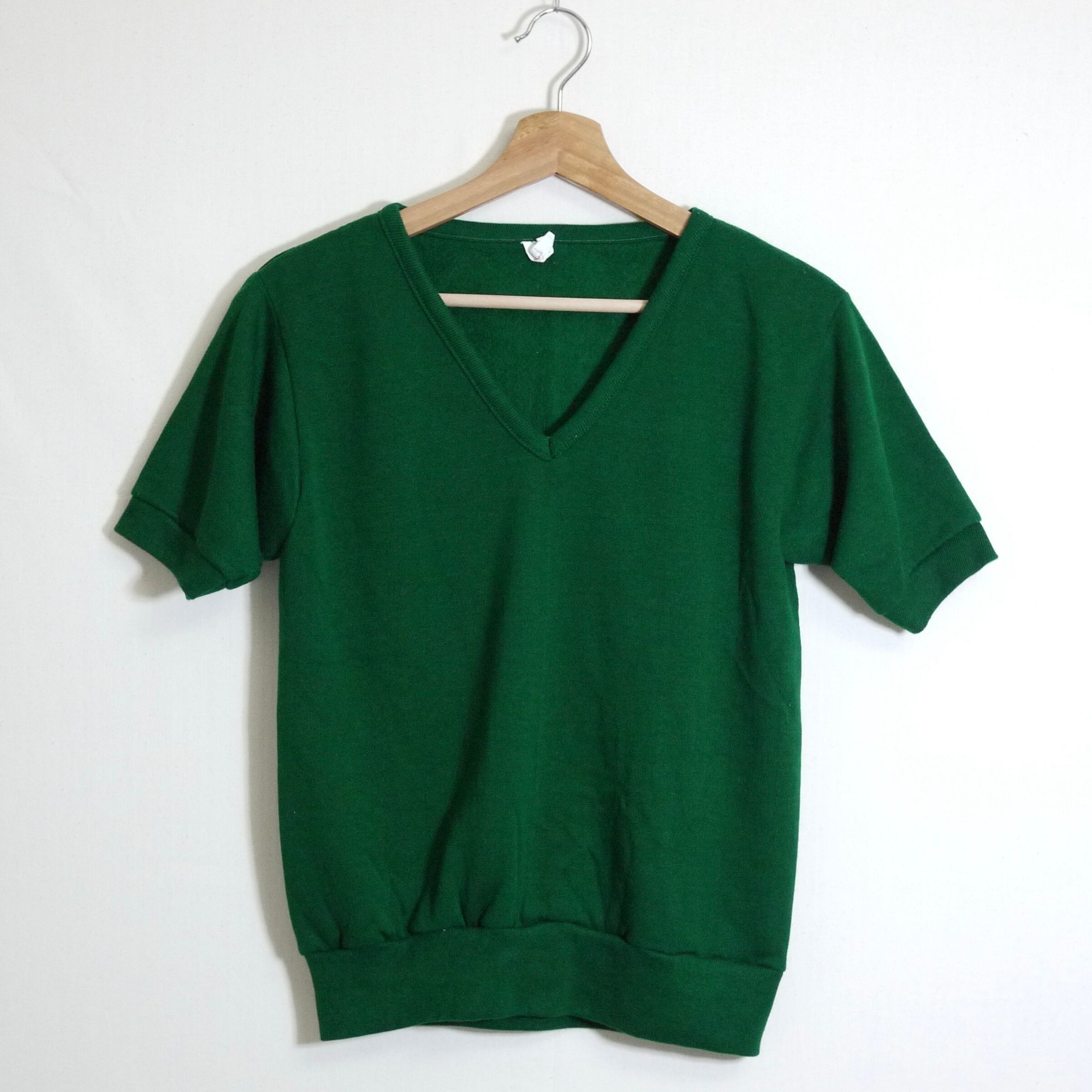 落ち着いたグリーンカラーの半袖スウェット。
