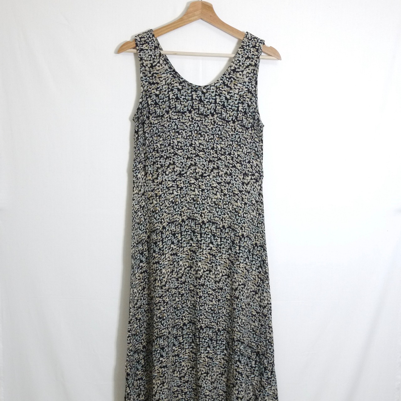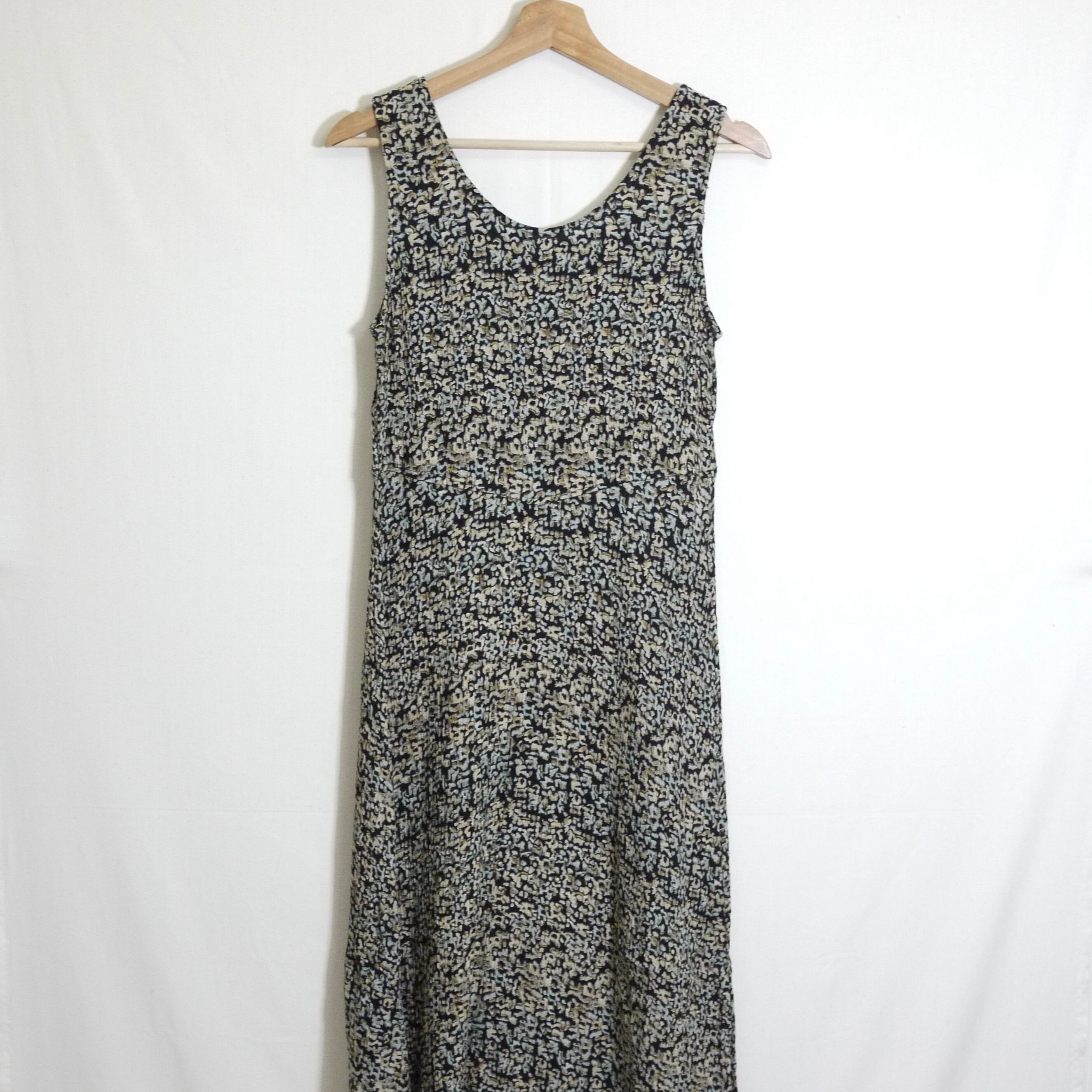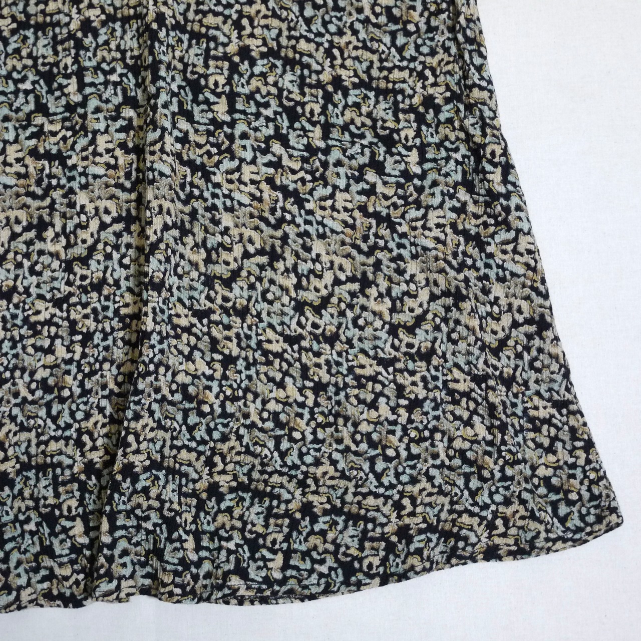 ブラックカラーがベースの総柄ワンピース。