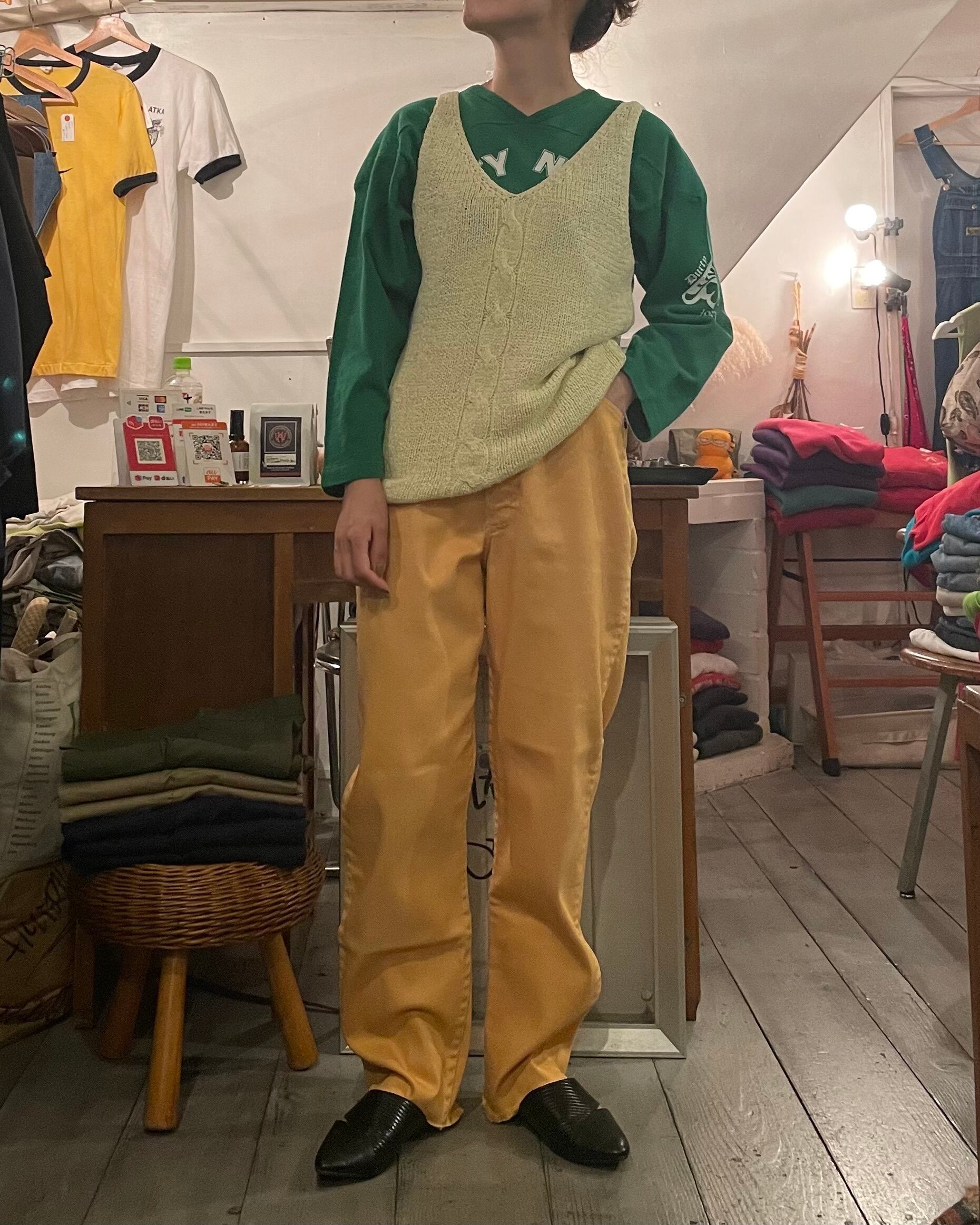 状態は、裾が切りっぱなしになっています。その他、全体的にスレなどの経年による多少の使用感はありますが、目立ったダメージや汚れはなく着用に問題はありません。