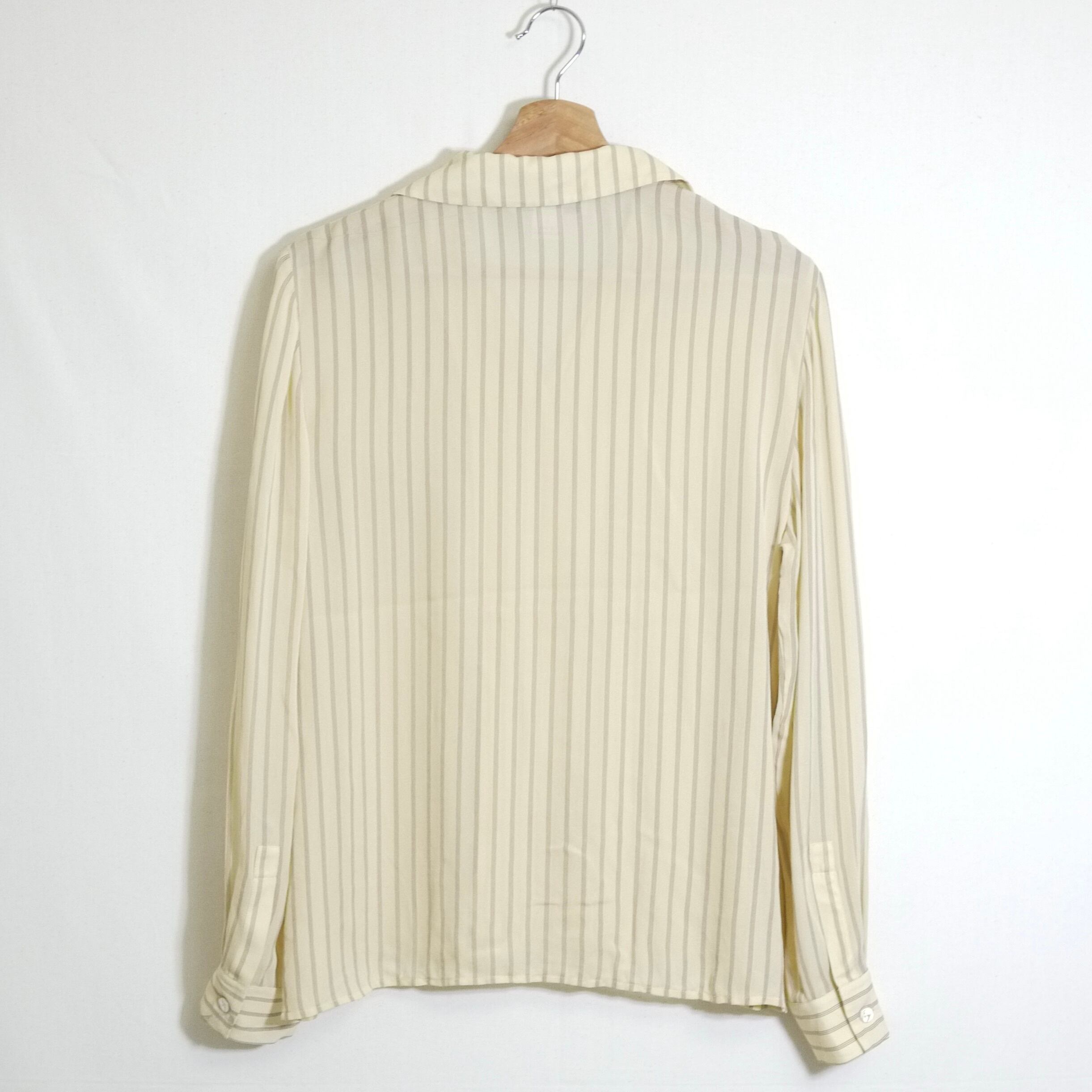 ライトベージュカラーがベースのストライプ柄シルクシャツ。