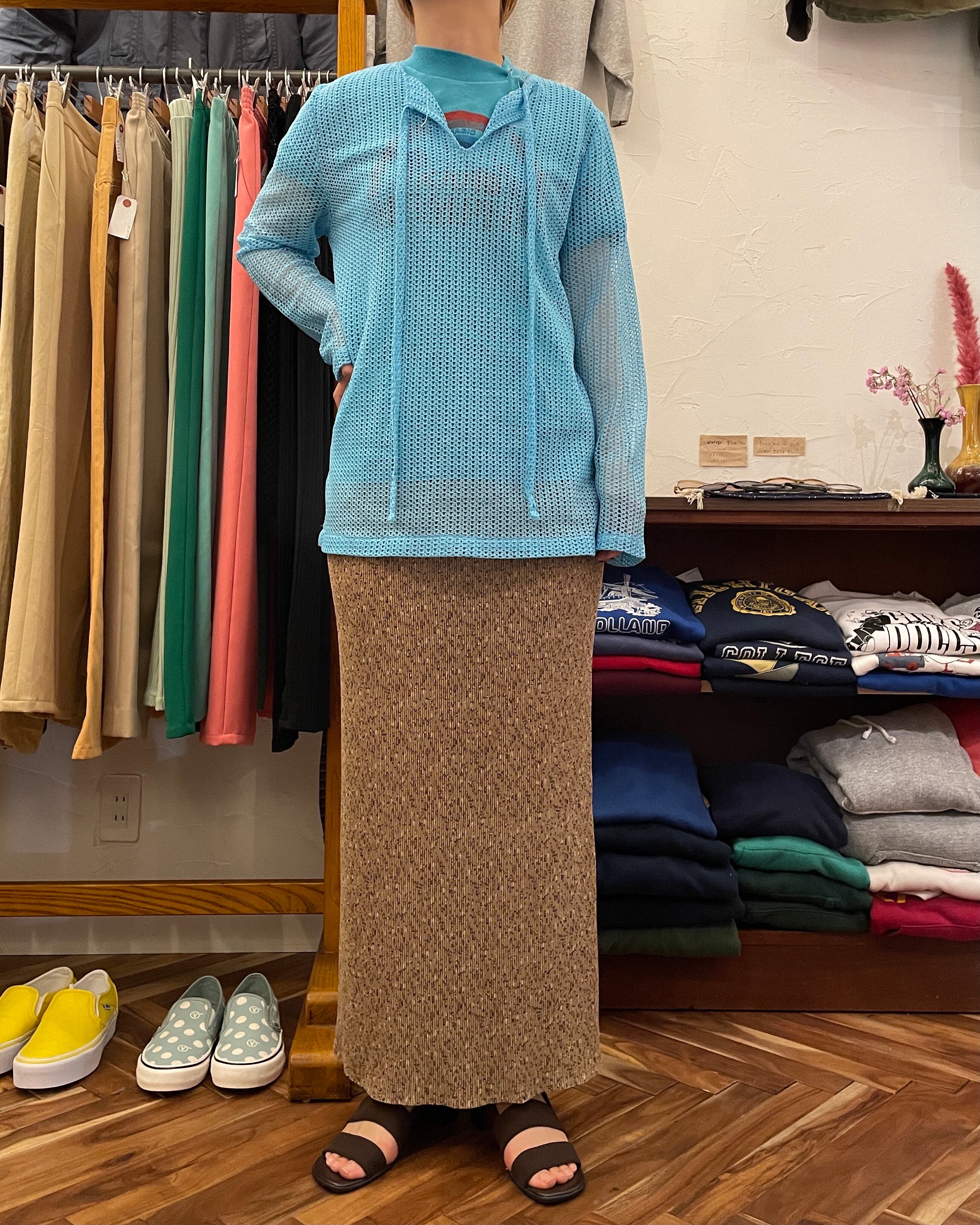 丈感も丁度良く、ウエストがゴム仕様でプリーツデザインということもあり、幅広いサイズの方にお楽しみ頂けるアイテムです。優しく体に沿うデザインが上品で女性らしいです♡若干ではありますが透け感があるので、気になる方は肌馴染みの良い色やデザインが響かないインナー、ペチコート等の着用をおすすめします。