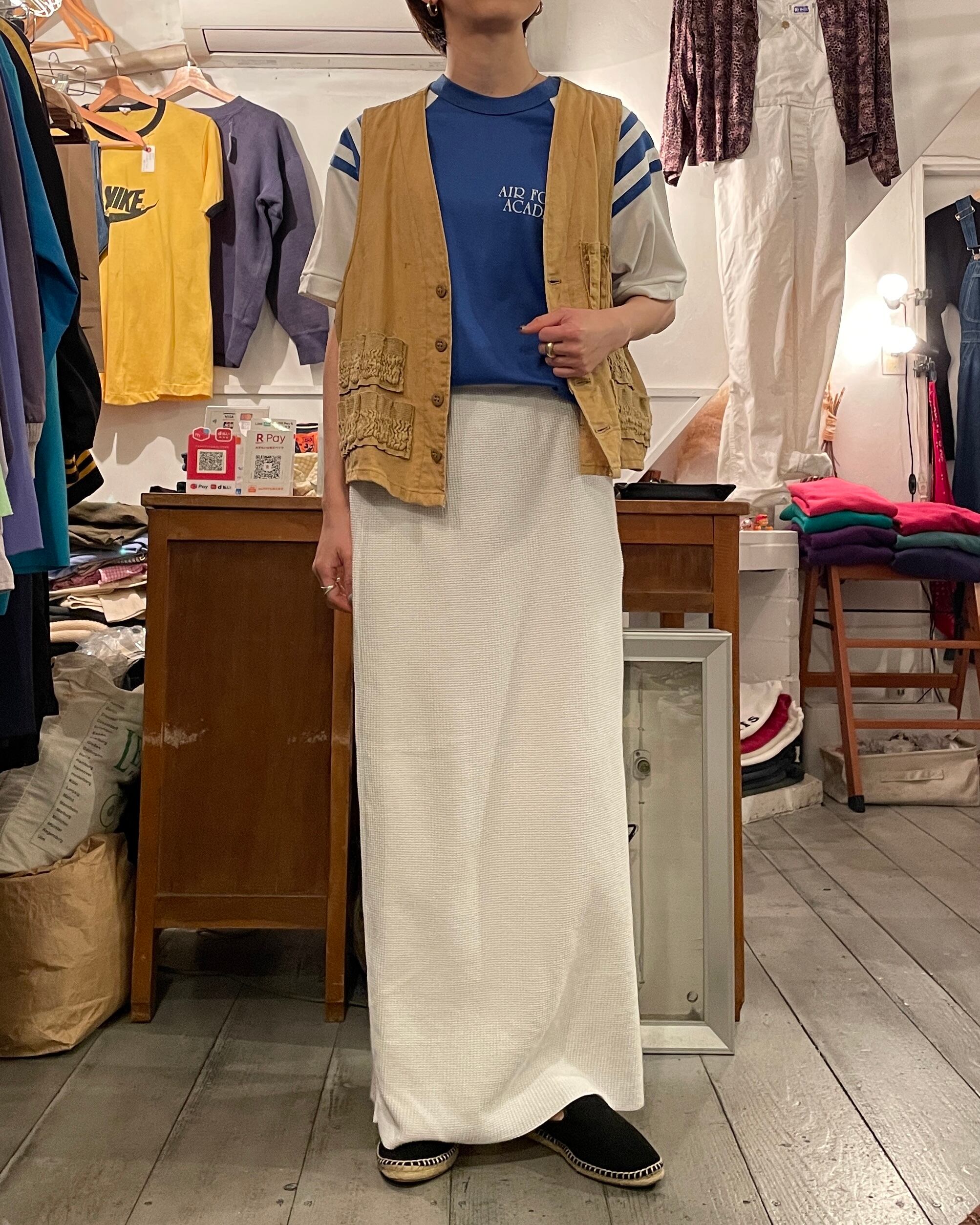 状態は、前身頃のウエスト付近に薄ら汚れ。その他、経年による使用感が多少ありますが、目立ったダメージや汚れはなく着用に問題はありません。