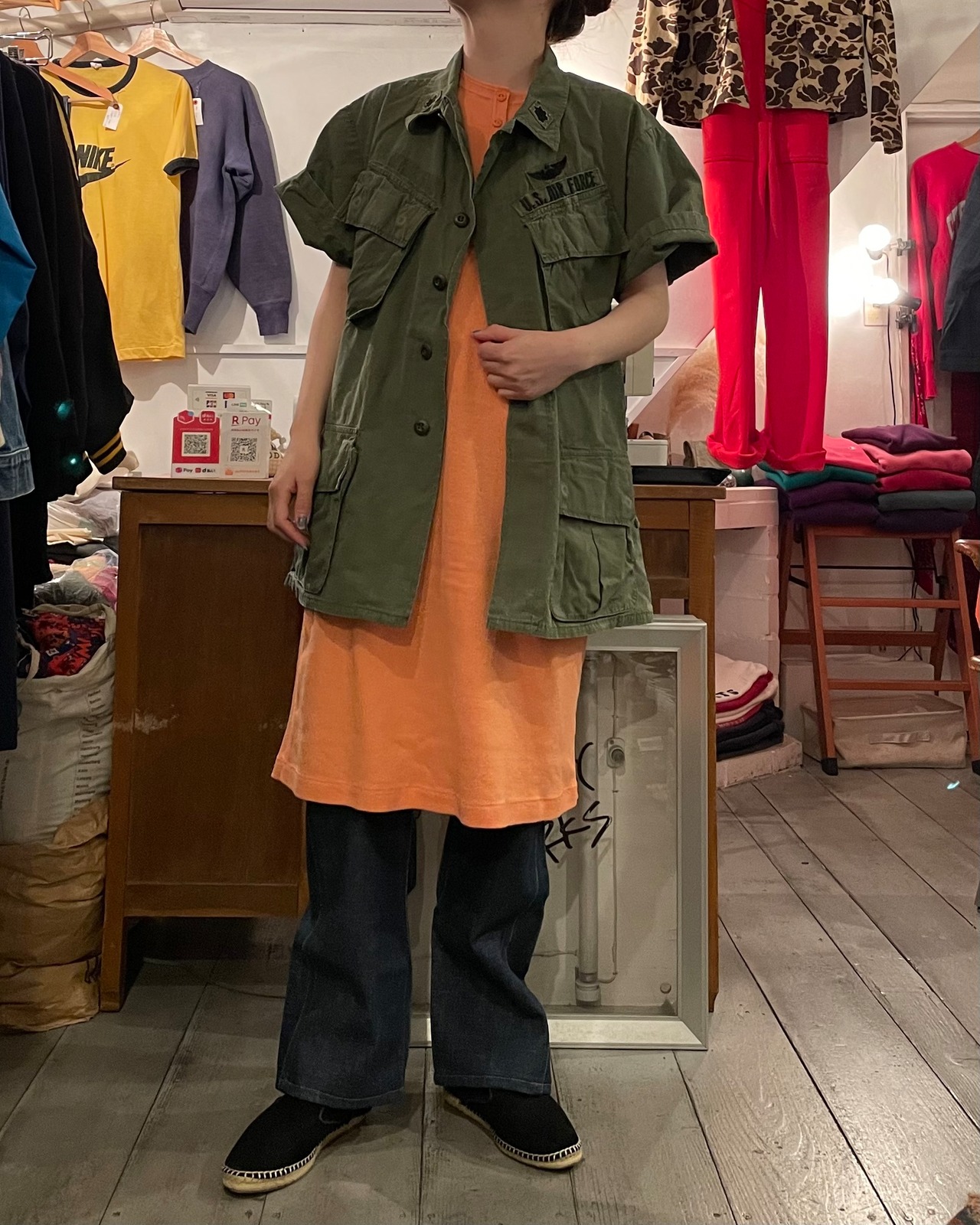 オレンジカラーのワンピース。