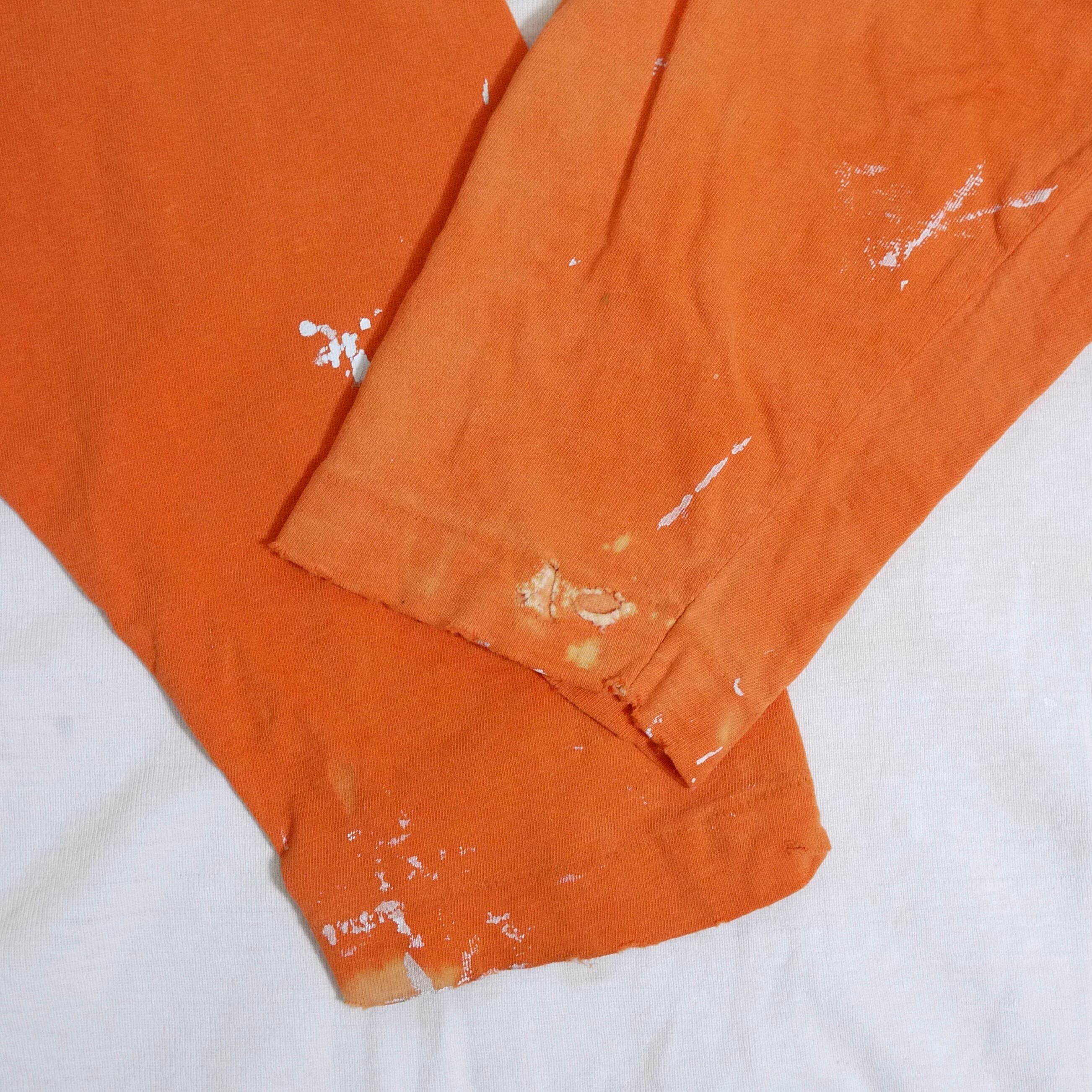 状態は、ネックのリブにほつれ。ネック周辺の生地が薄くなっています。前身頃を中心に所々汚れ。両袖にペンキ汚れ。左袖にダメージ。その他、経年による使用感はありますが、着用に問題ありません。コンディションをご理解頂ける方にお願いします。