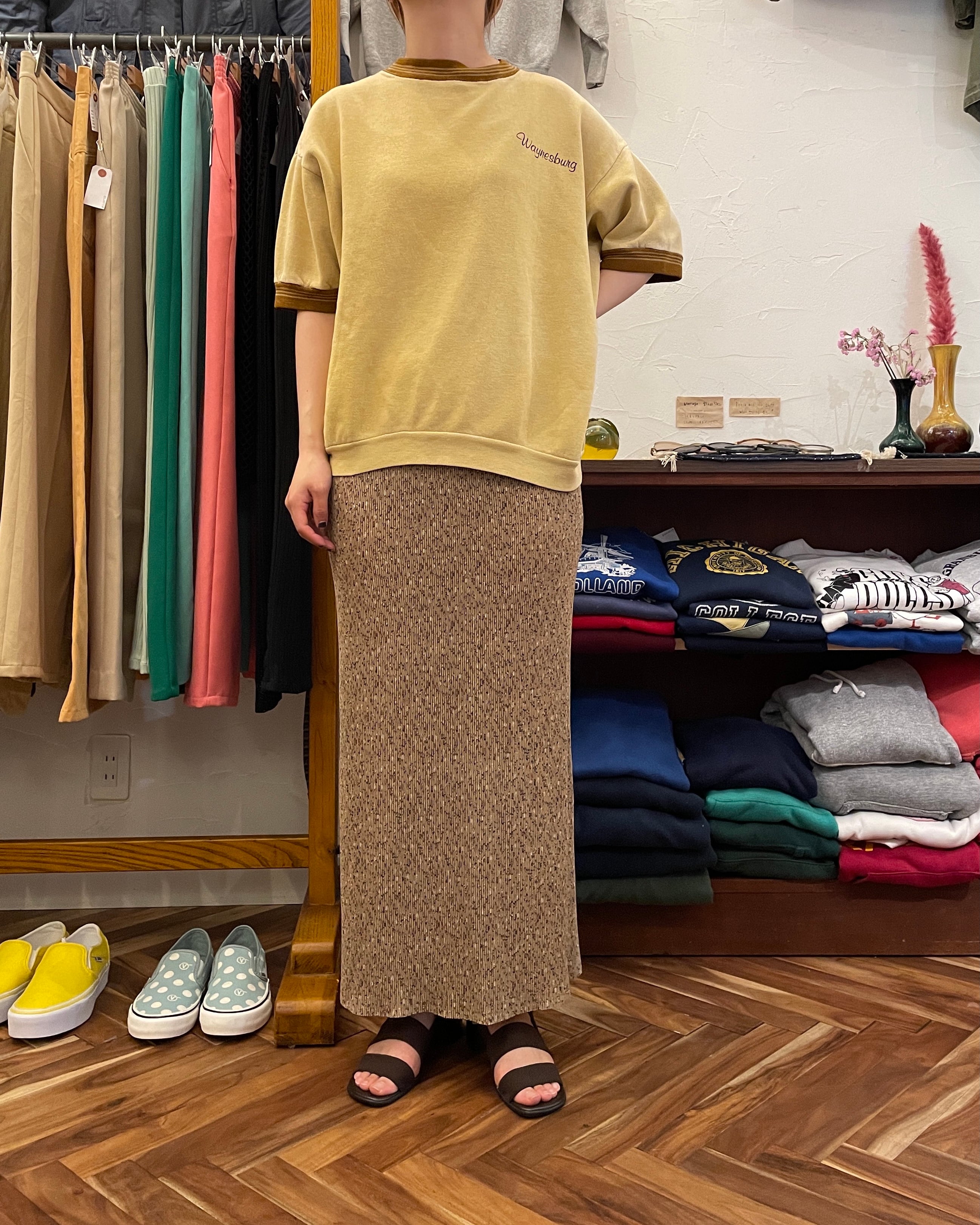 胸にワンポイントのカレッジプリントの半袖スウェット。