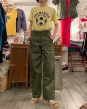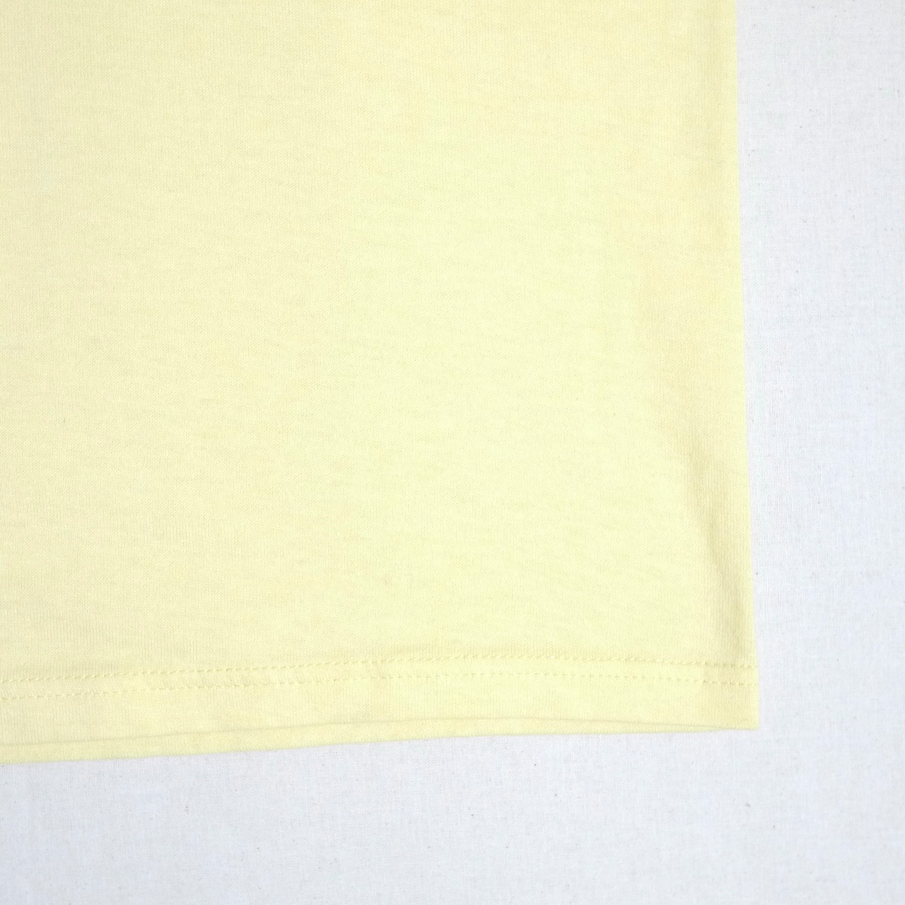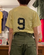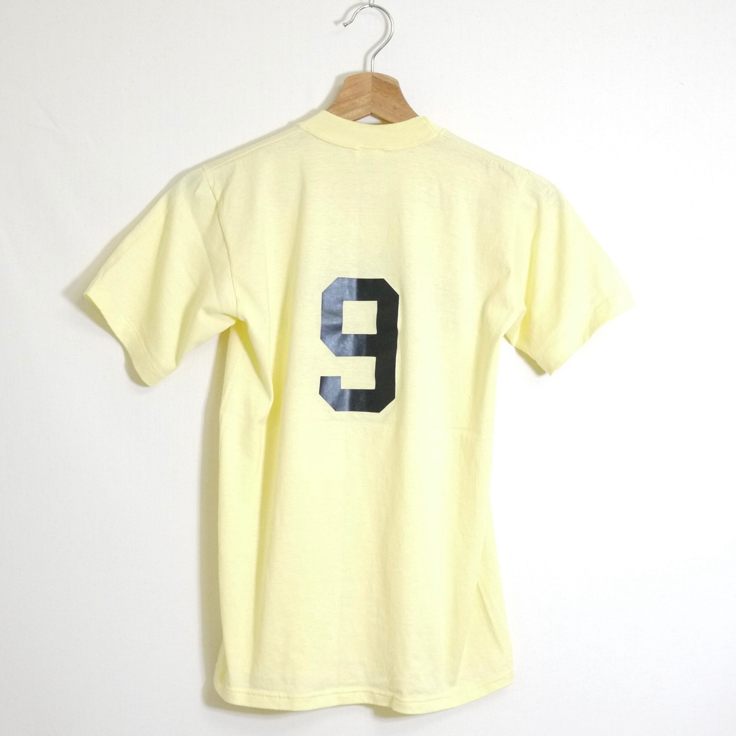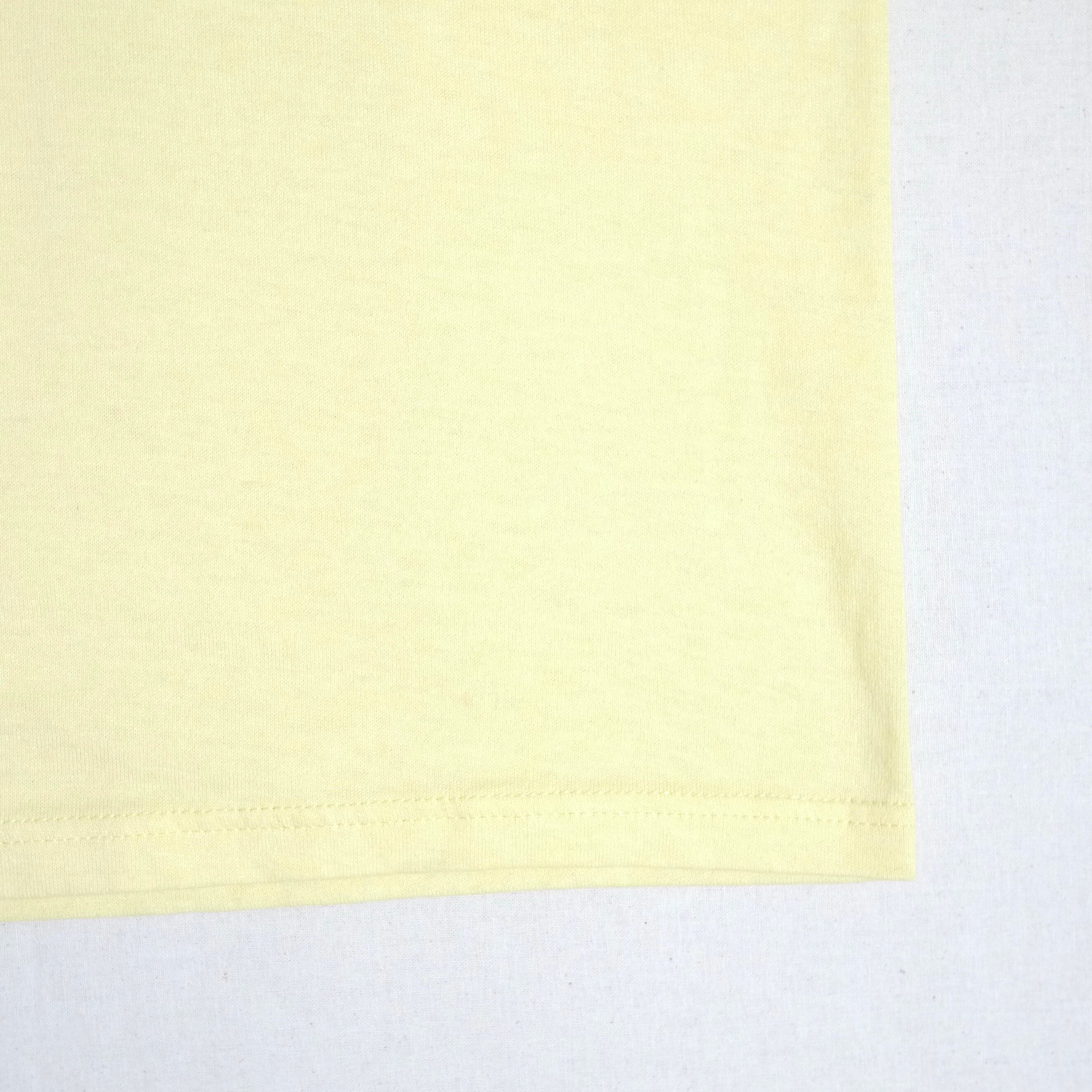 ライトイエローカラーのボディのプリントTシャツ。