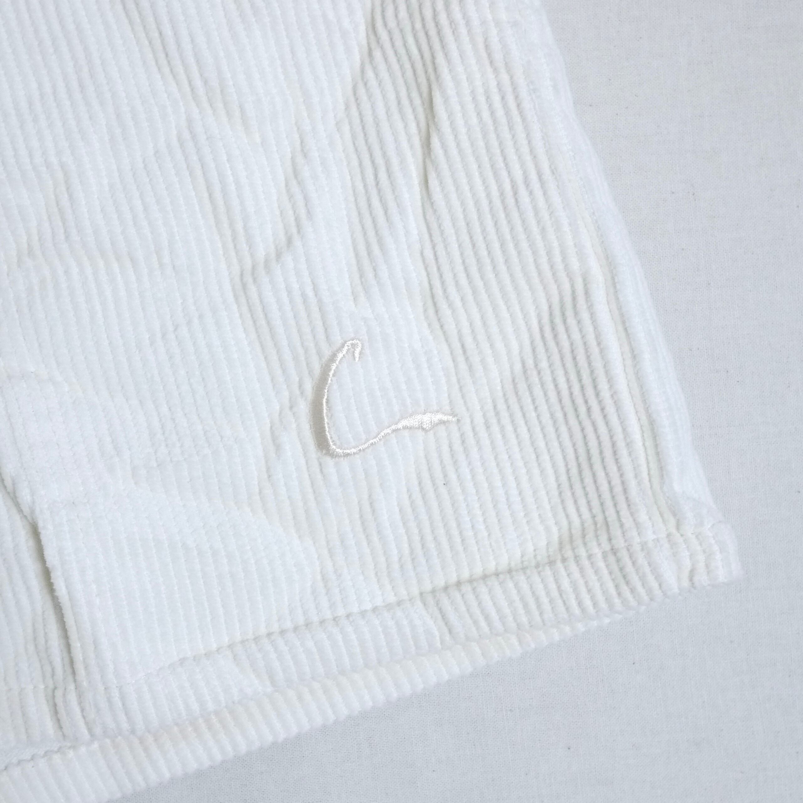 ホワイトカラーのコーデュロイショーツ。