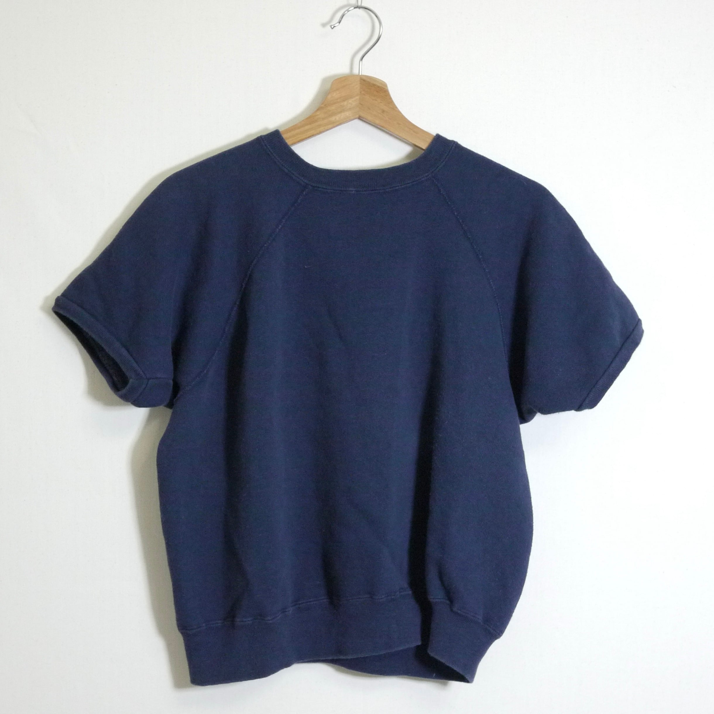 ネイビーカラーのボディにカレッジプリントの半袖スウェット。