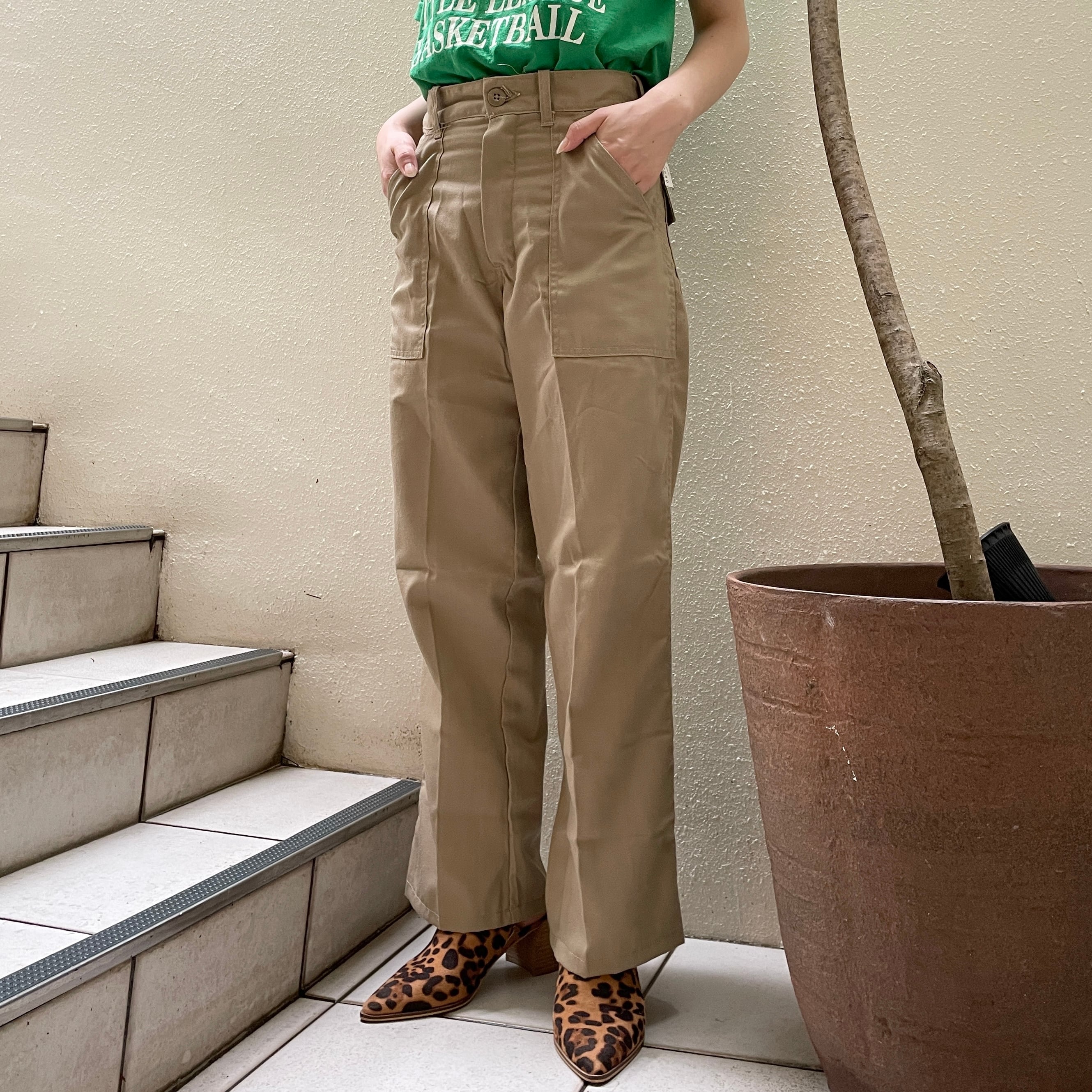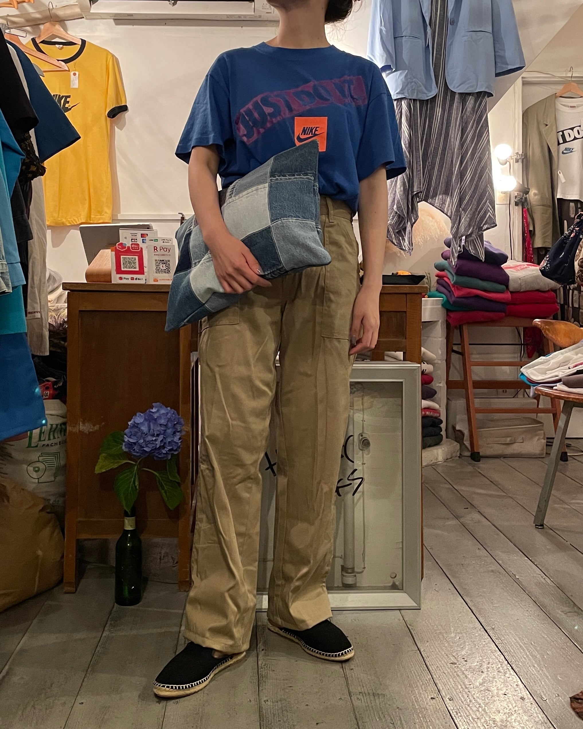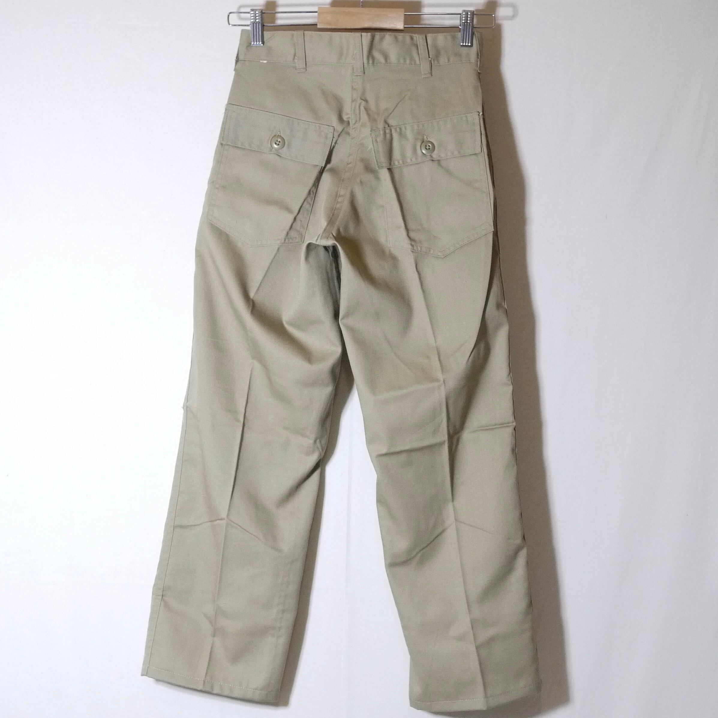 状態は、保管時の経年による折りシワや多少のほこりはありますが、目立った汚れやダメージはなくキレイなデッドストック。裾の始末がされていない状態でしたので、当店にて裾上げを行っています。