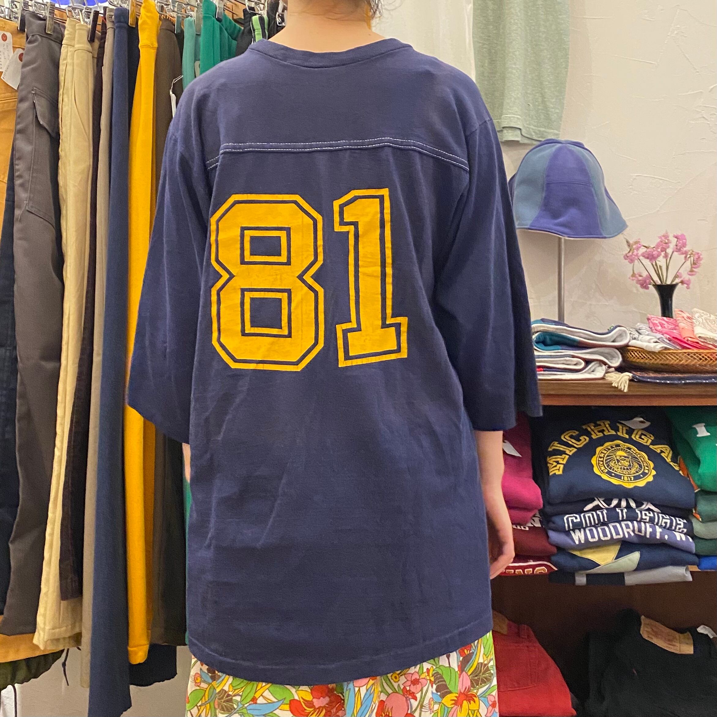 ナンバー入りの古着らしいグラフィック。