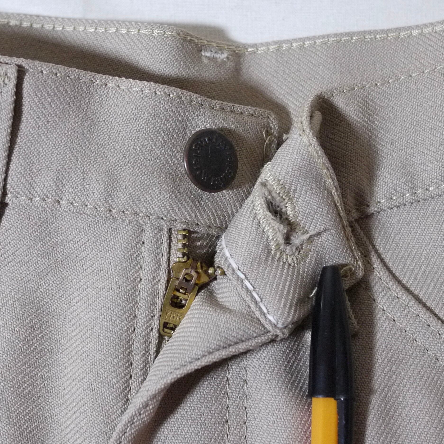 状態は、左足の膝付近と裾付近に小さな汚れ。その他、全体的に経年による多少の使用感はありますが、目立った汚れやダメージはなく着用に問題はありません。