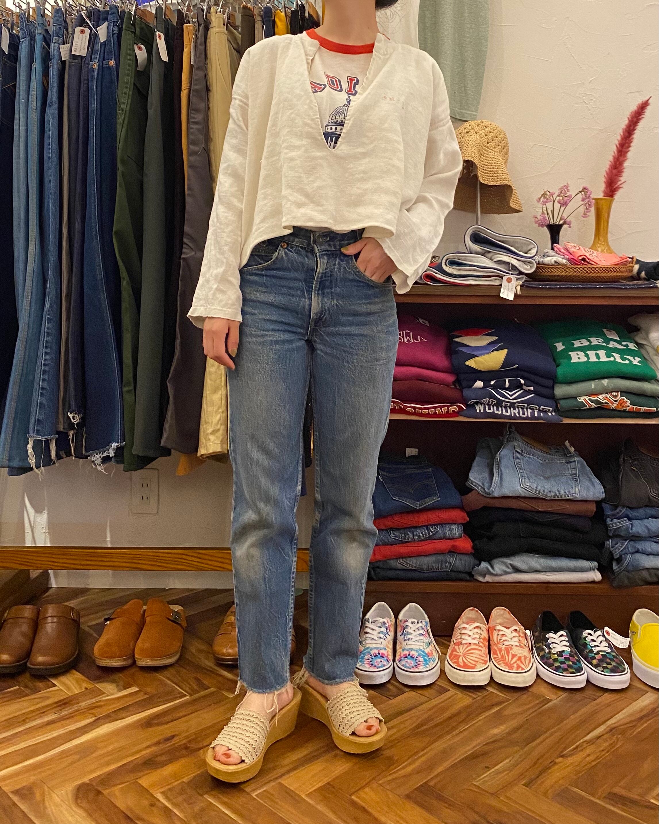 状態は、ネック、袖ともにリンガーのカラーが少しボディに色移りしている箇所があります。その他、経年による使用感は多少ありますが、目立った汚れやダメージはなく着用に問題はありません。
