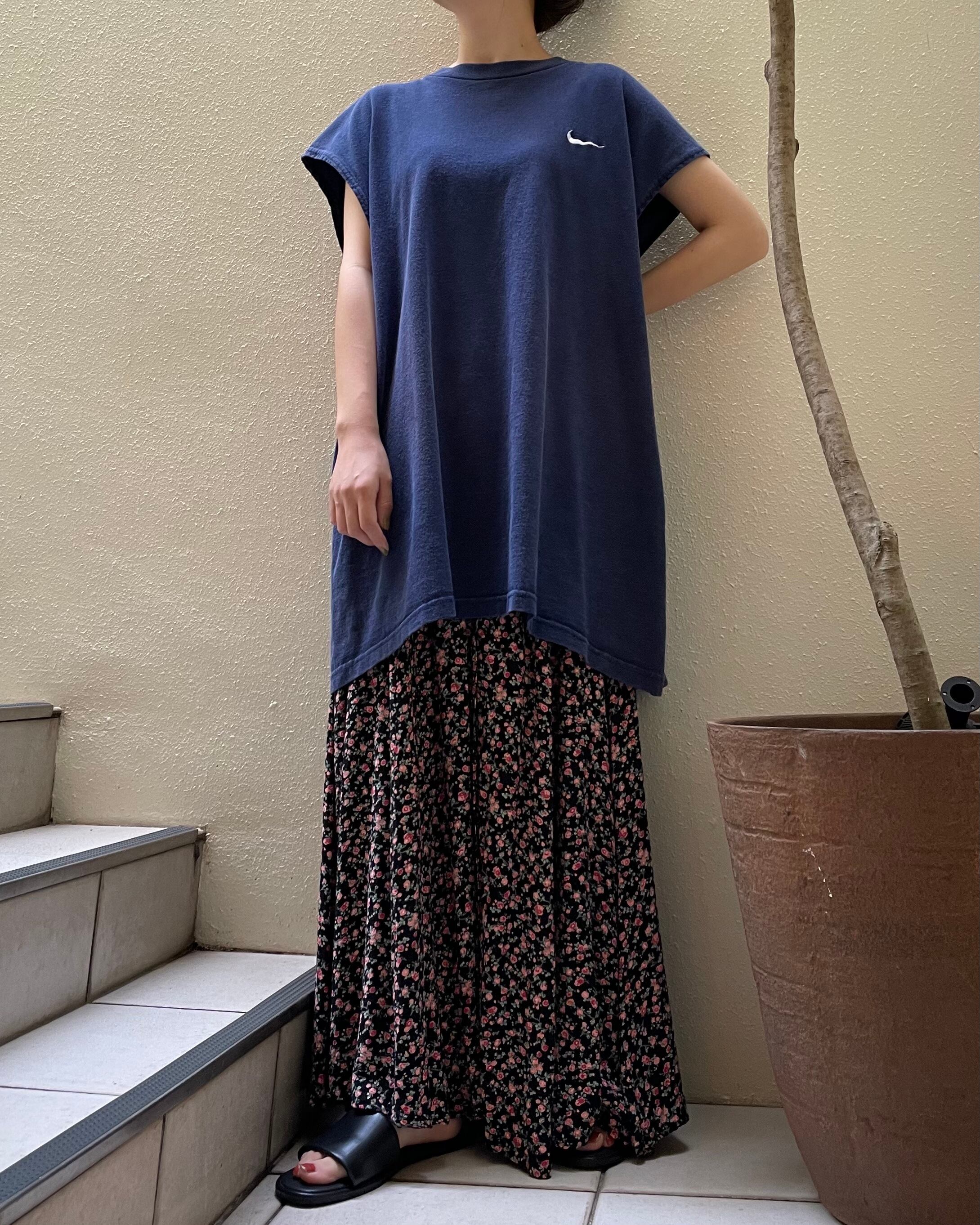 前所有者によって袖をカットオフされたカスタマイズされたアイテムか元々スリーブレストップスだったのかは不明。