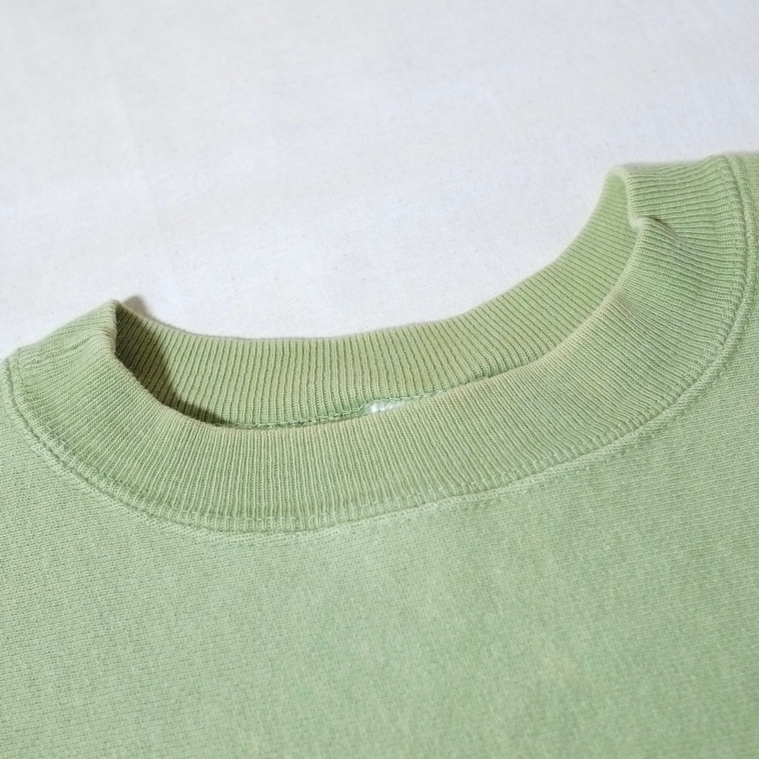 ライトグリーンのボディにロゴの刺繍がデザインされたリバースウィーブ。
