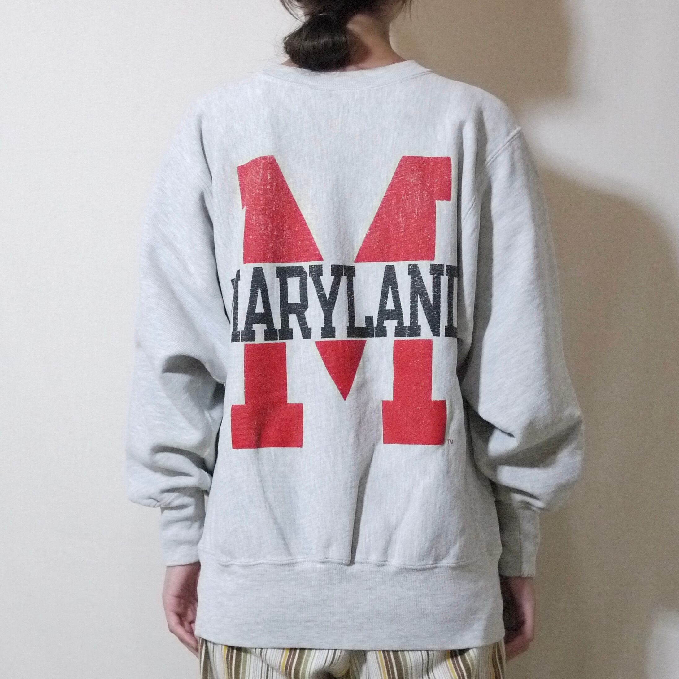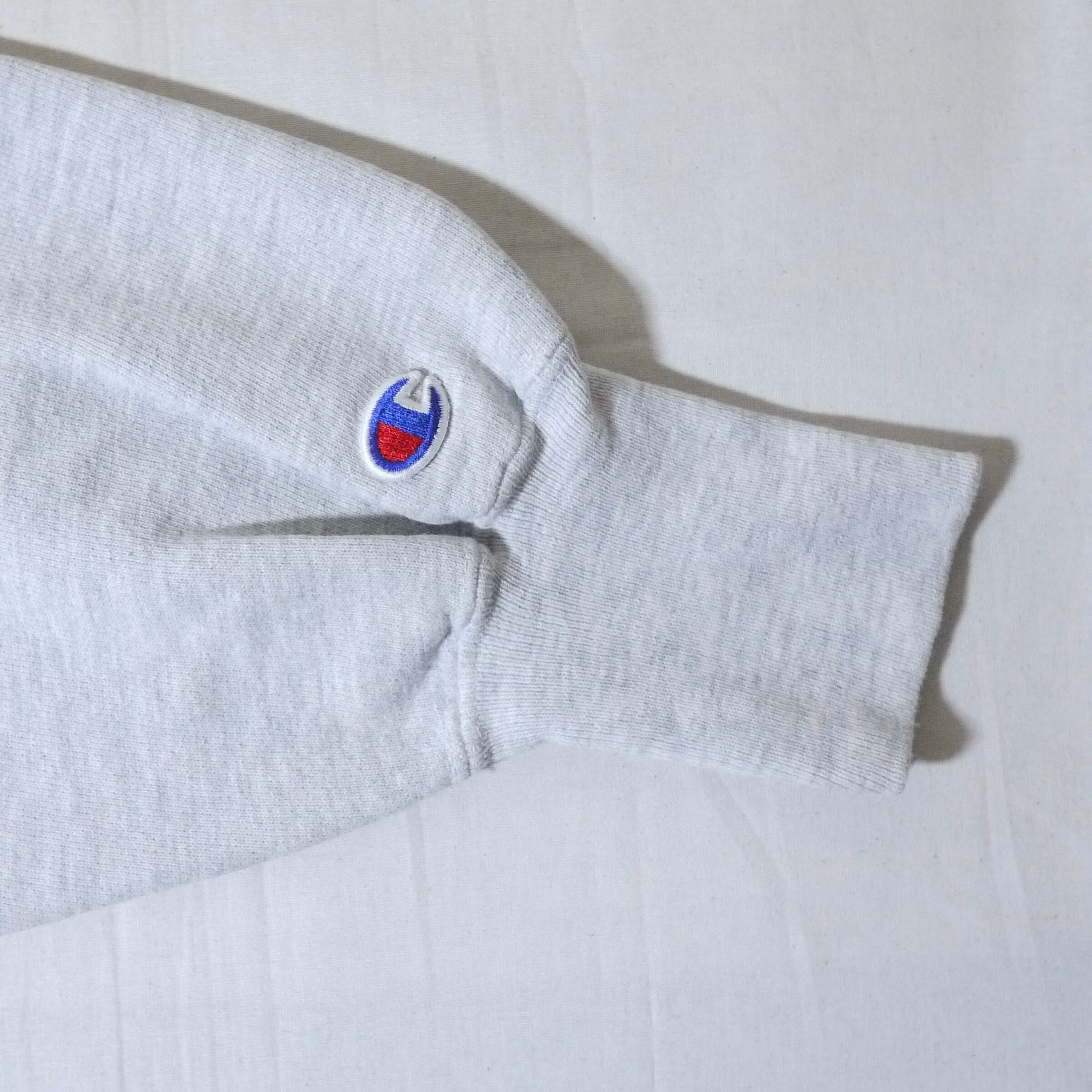 グレーのボディにカレッジプリントのリバースウィーブ。