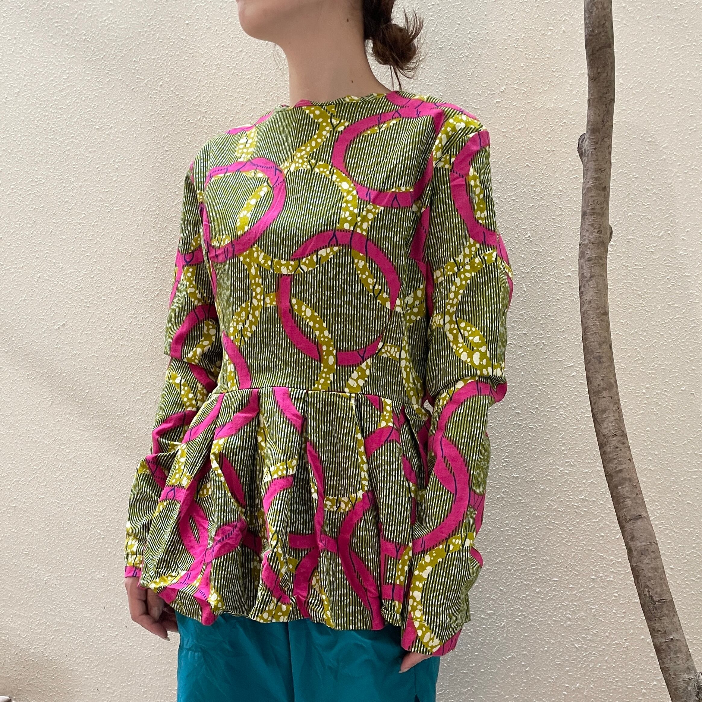 存在感のある総柄のバティックトップス。