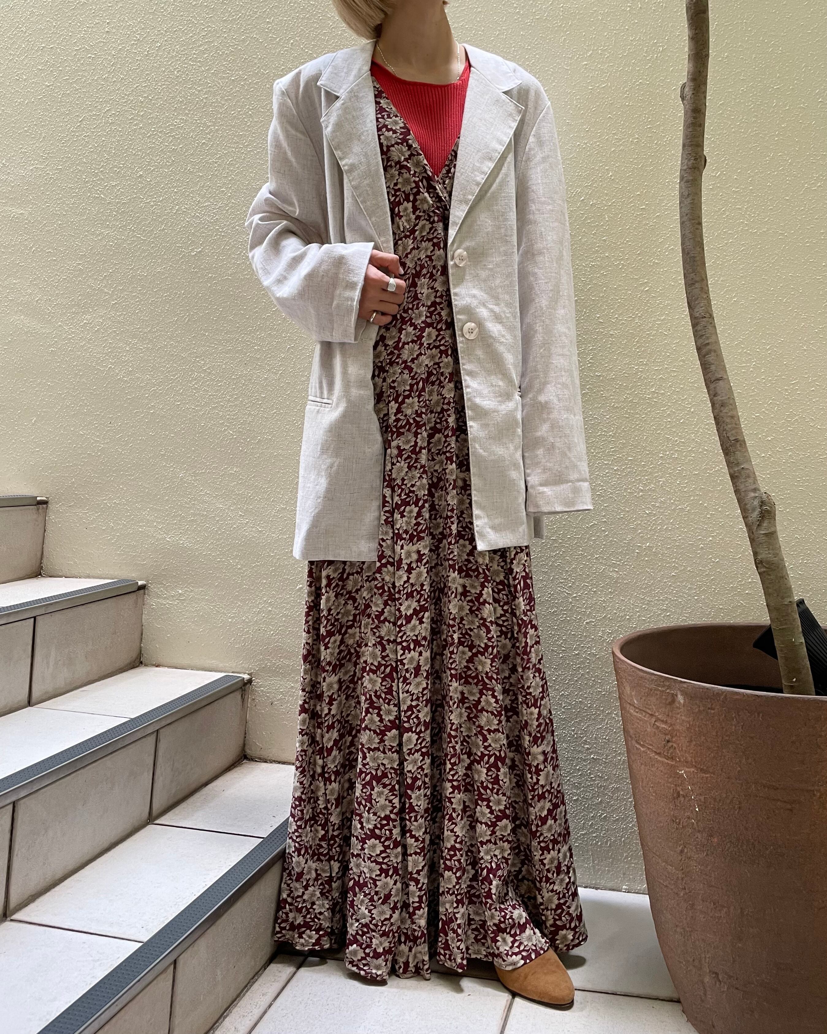 落ち着いたカラーの花柄なのでレイヤードしやすいアイテム。