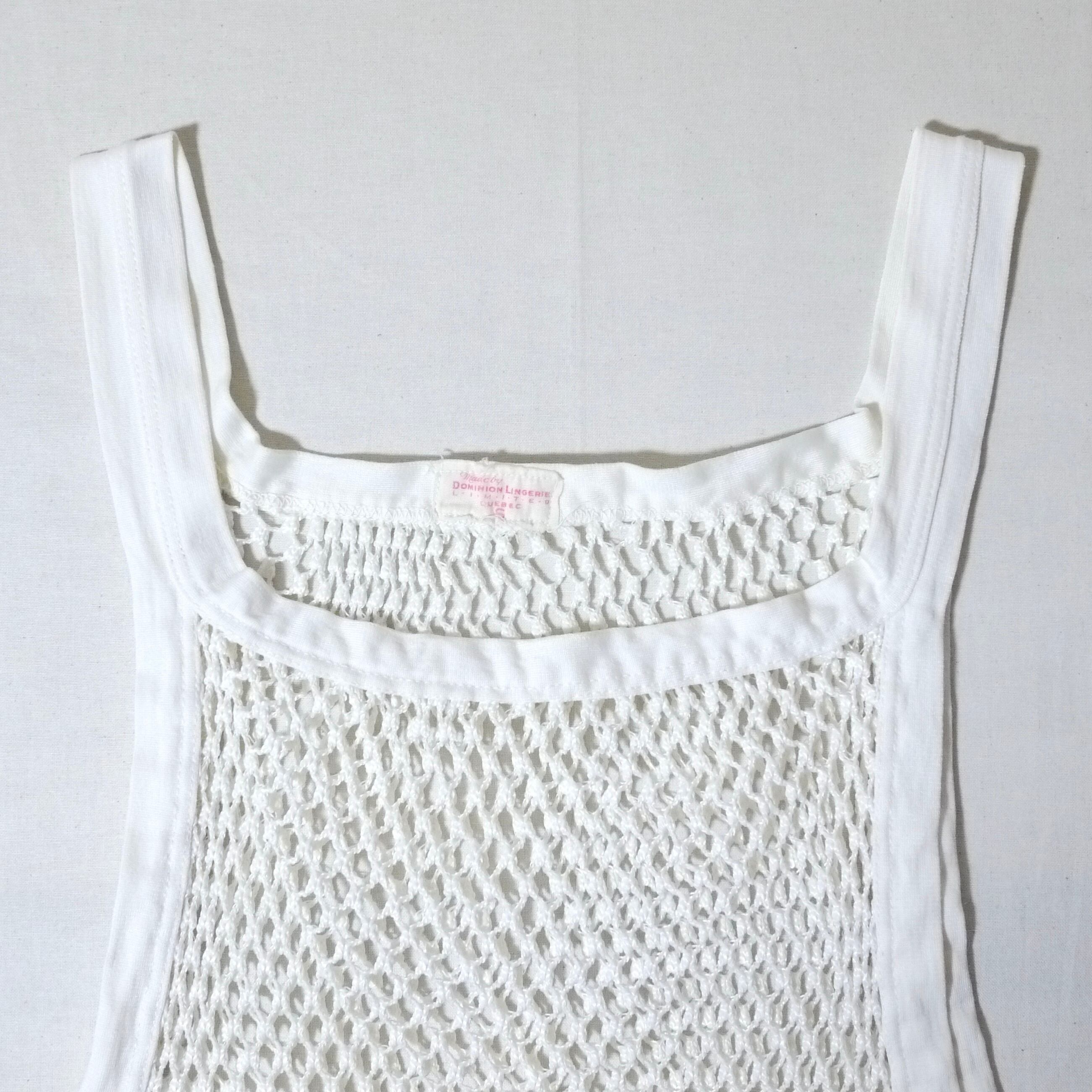 ホワイトカラーのメッシュデザインのタンクトップ。
