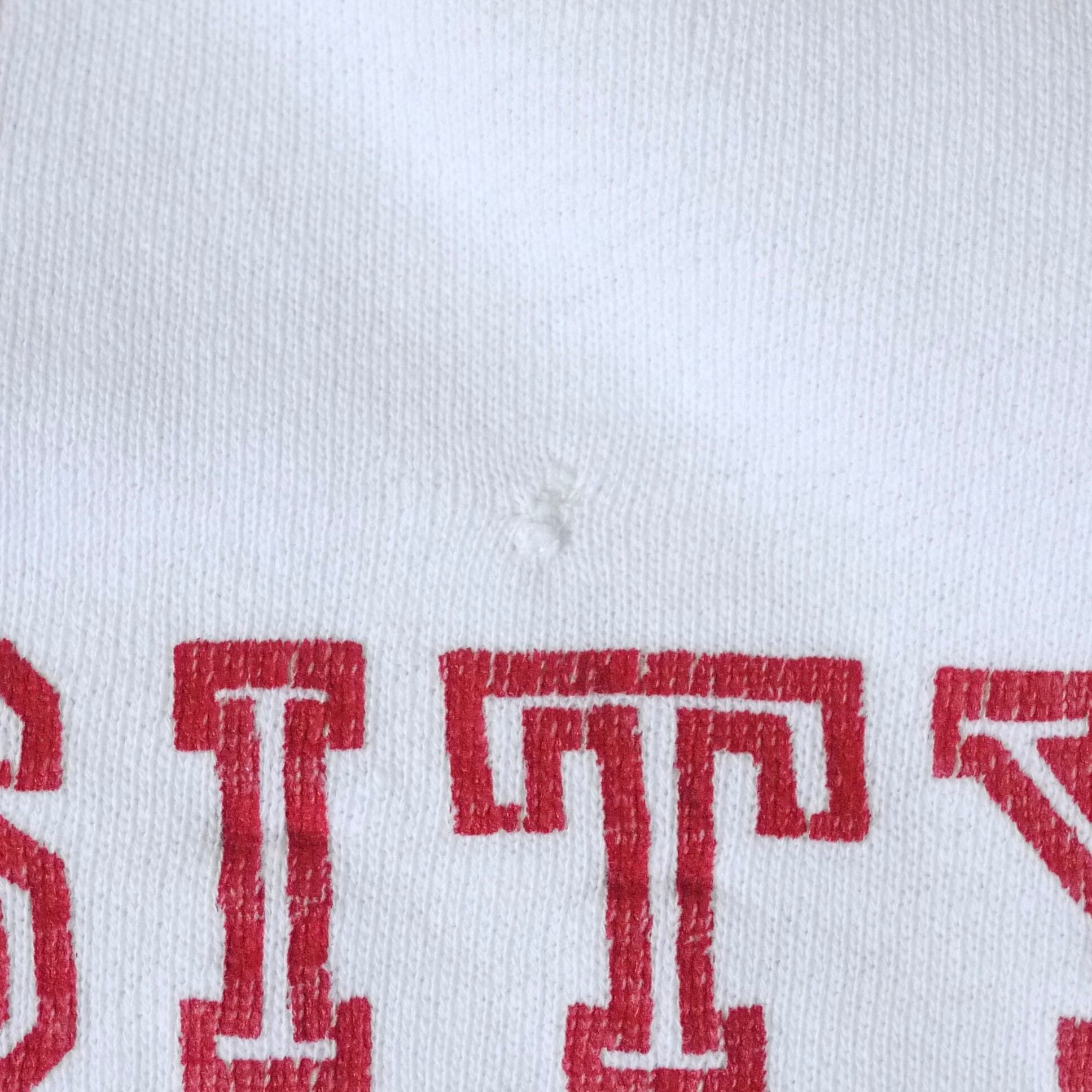 状態は、所々に小さな汚れ。プリント部分、後ろ側のステッチ部分の複数にリペア。その他、全体的に経年による使用感はありますが、着用に問題はありません。