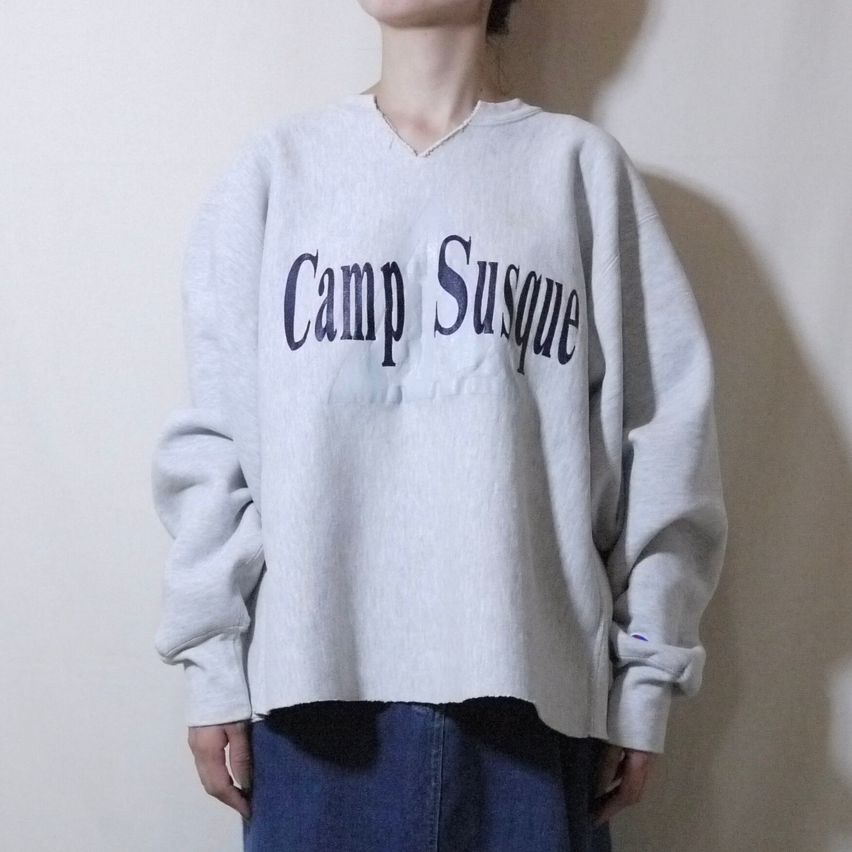 状態は、裾のリブがカットされ、ネックに切り込みがされています。プリント上の左胸付近と後ろ側の右肩付近に薄らシミ。両袖や裾付近に細かな汚れ。その他、経年による使用感はありますが、着用に問題はありません。