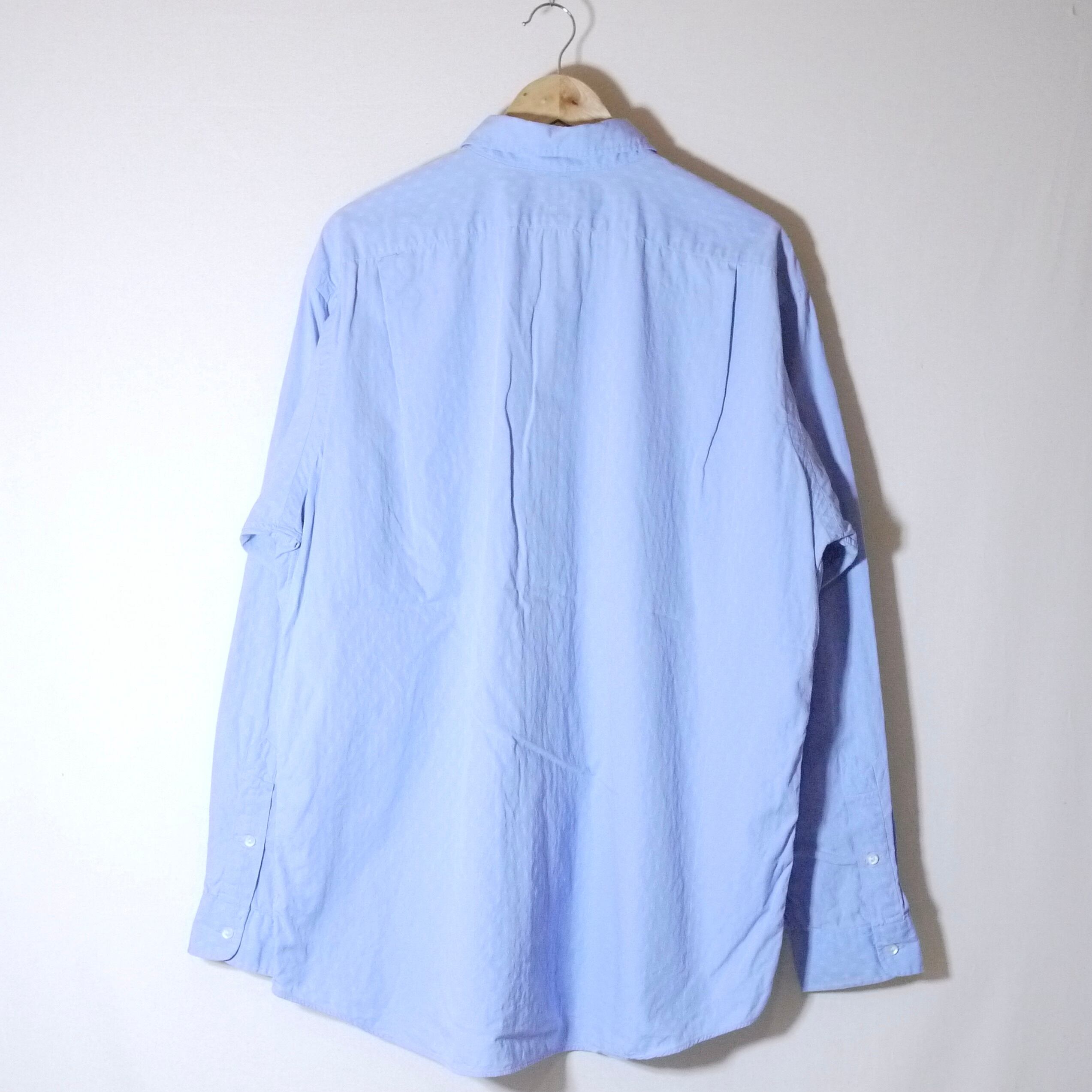 少し薄手の生地感でライトブルーカラーの長袖シャツ。