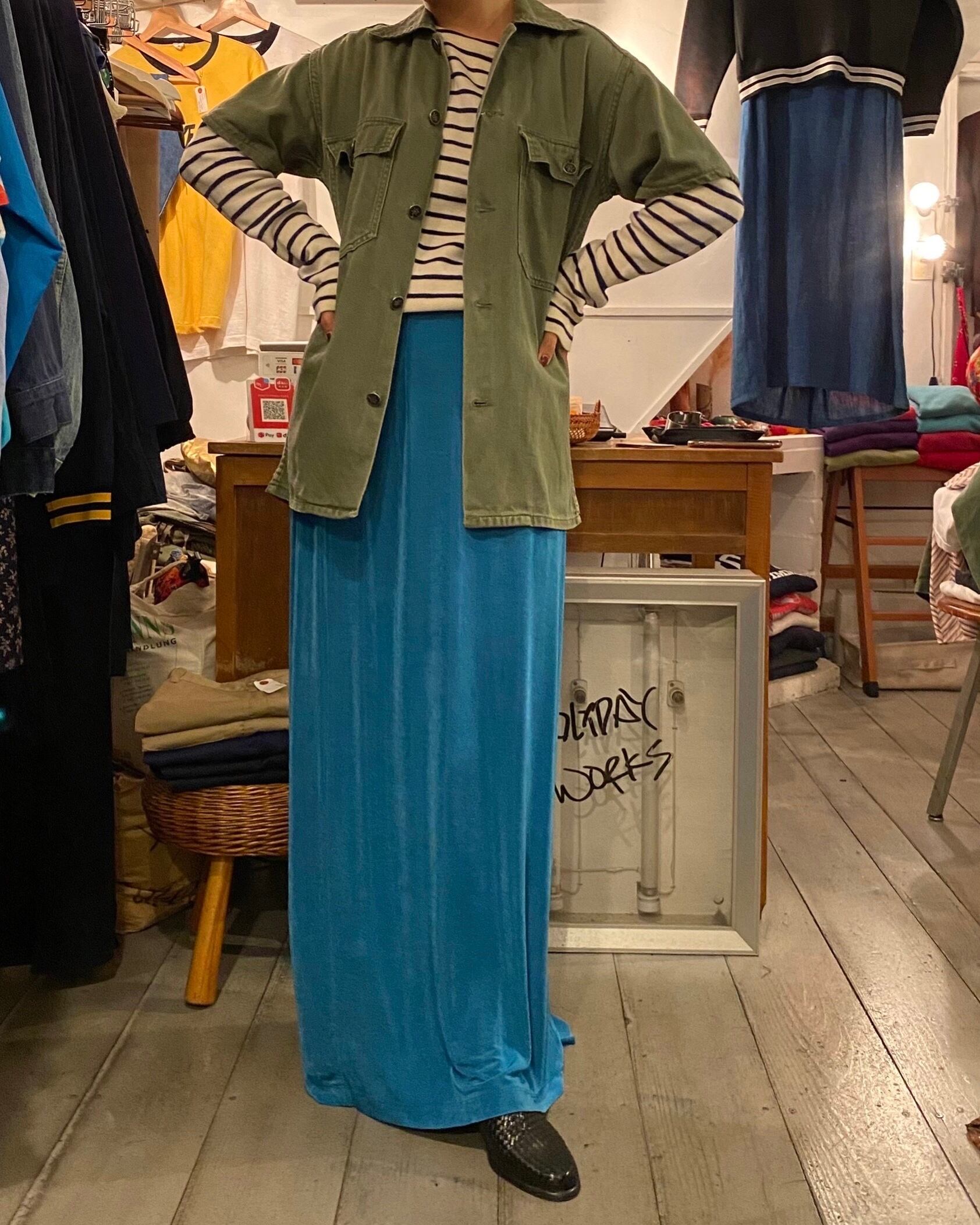 ブルーカラーのスカート。