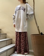バーガンディカラーの花柄スカート。