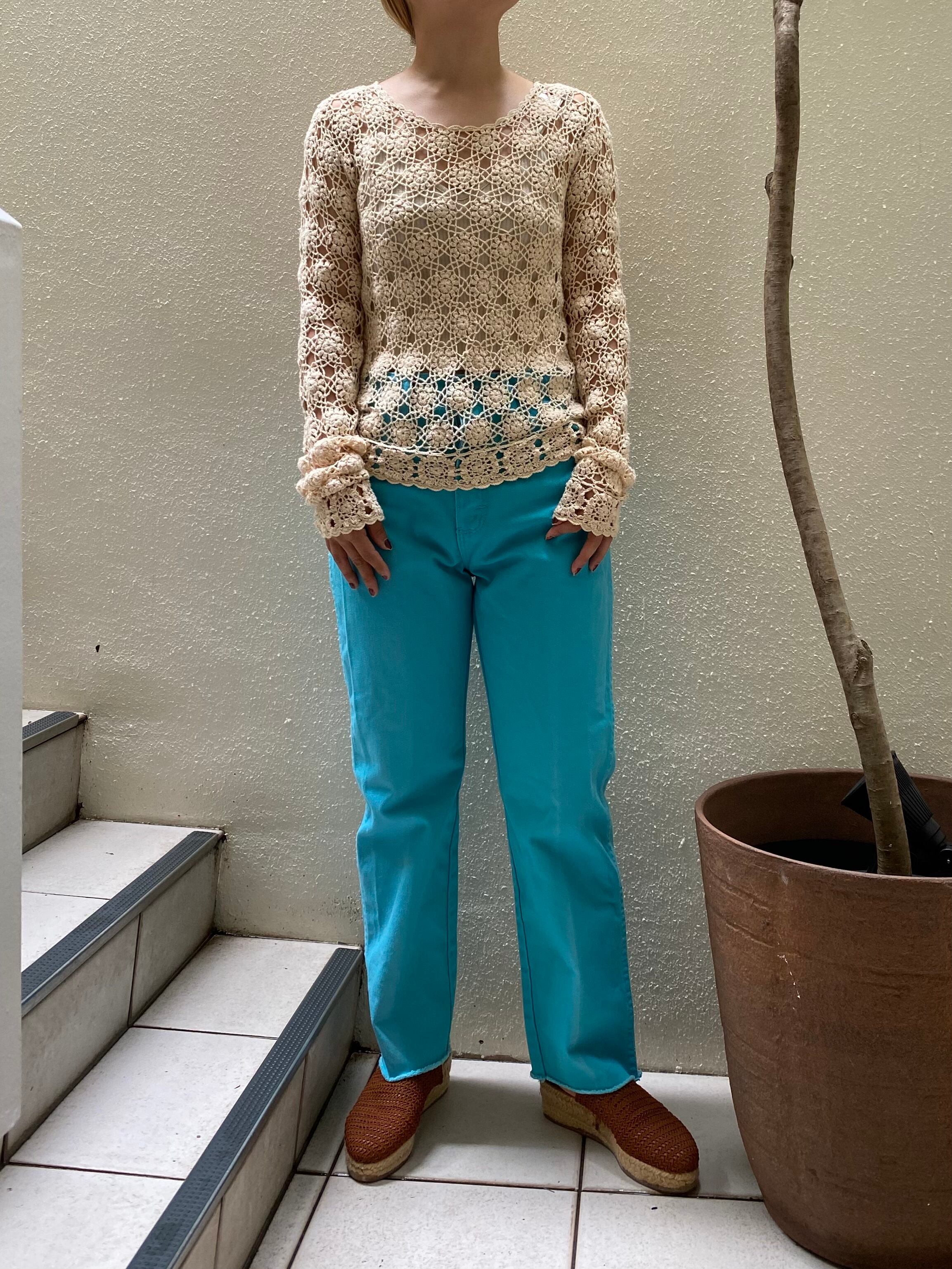 網目がメッシュデザインのようになっているので、インナーを工夫することでレイヤードを楽しめます。