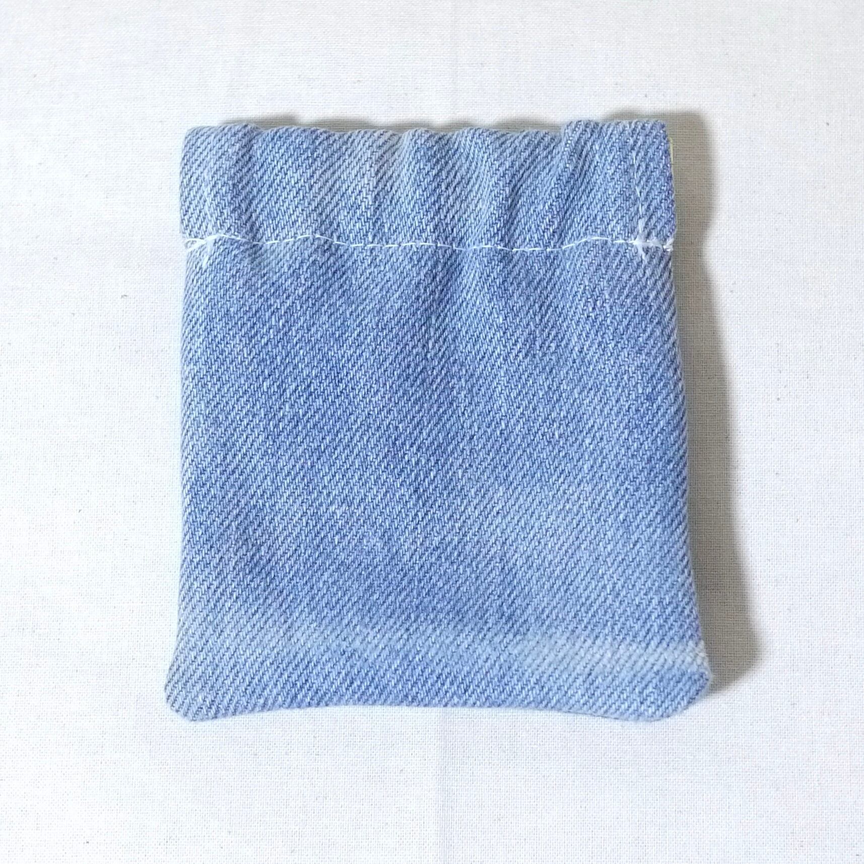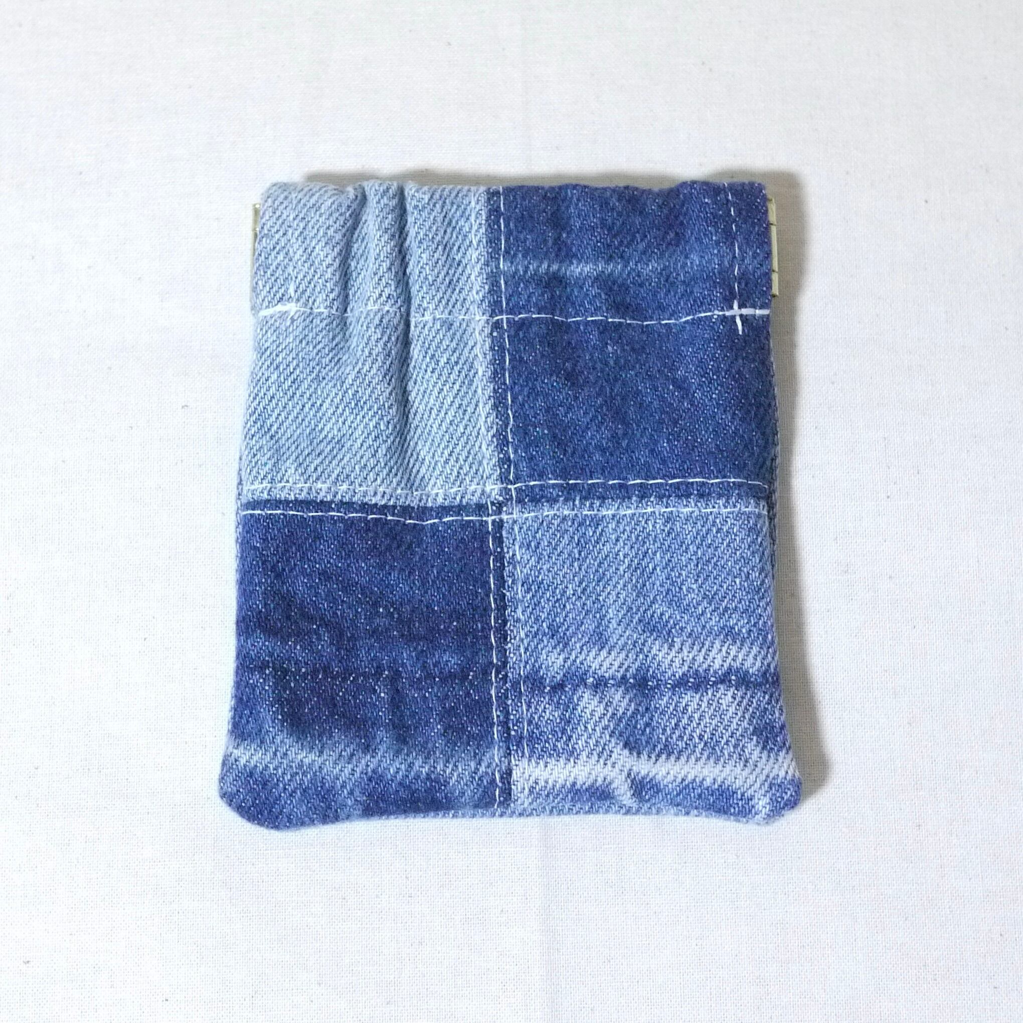 カラー、色落ちの異なるブルーデニムのパッチワークデザイン。
