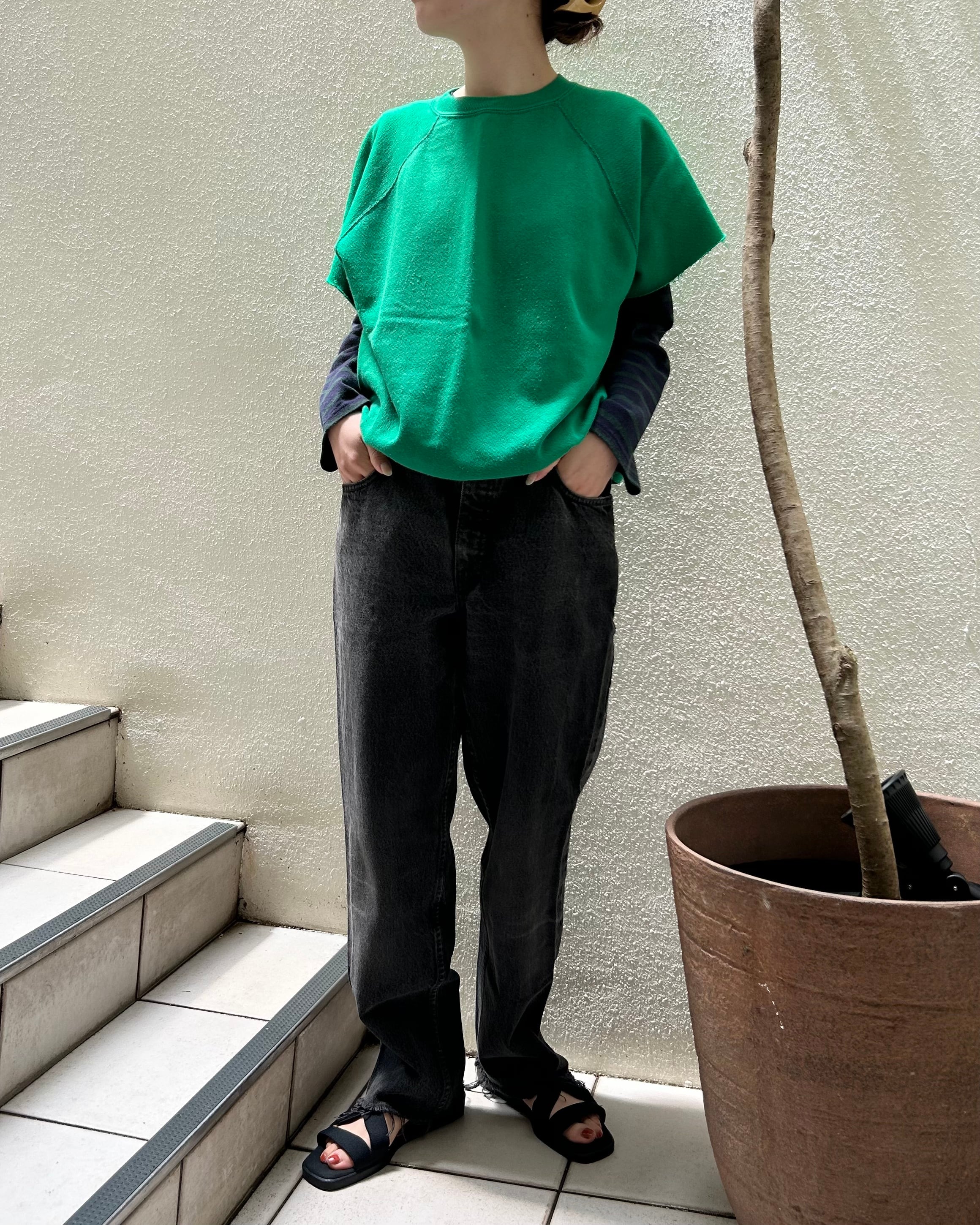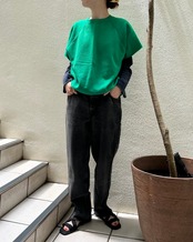 無地のシンプルなラグランシルエットで合わせやすく着回しの効くアイテム。