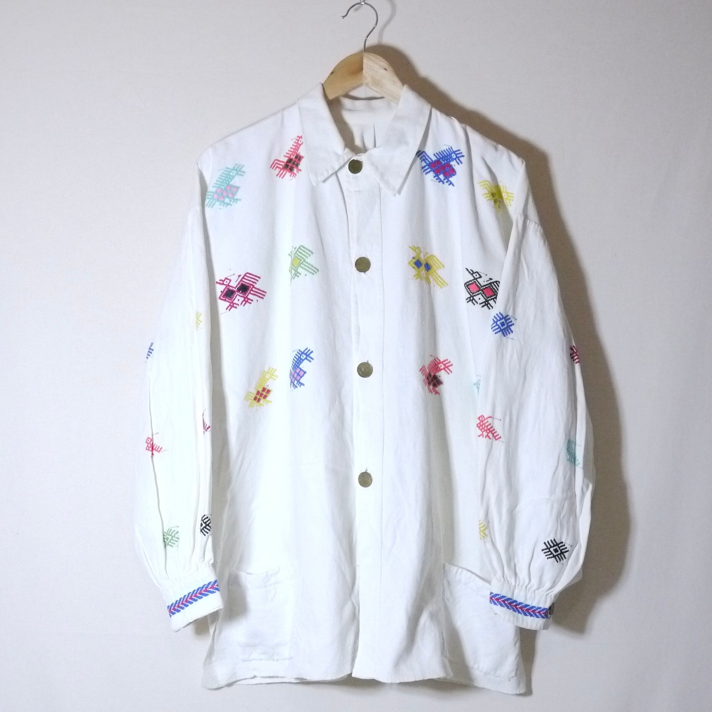 ホワイトカラーの刺繍ジャケット。