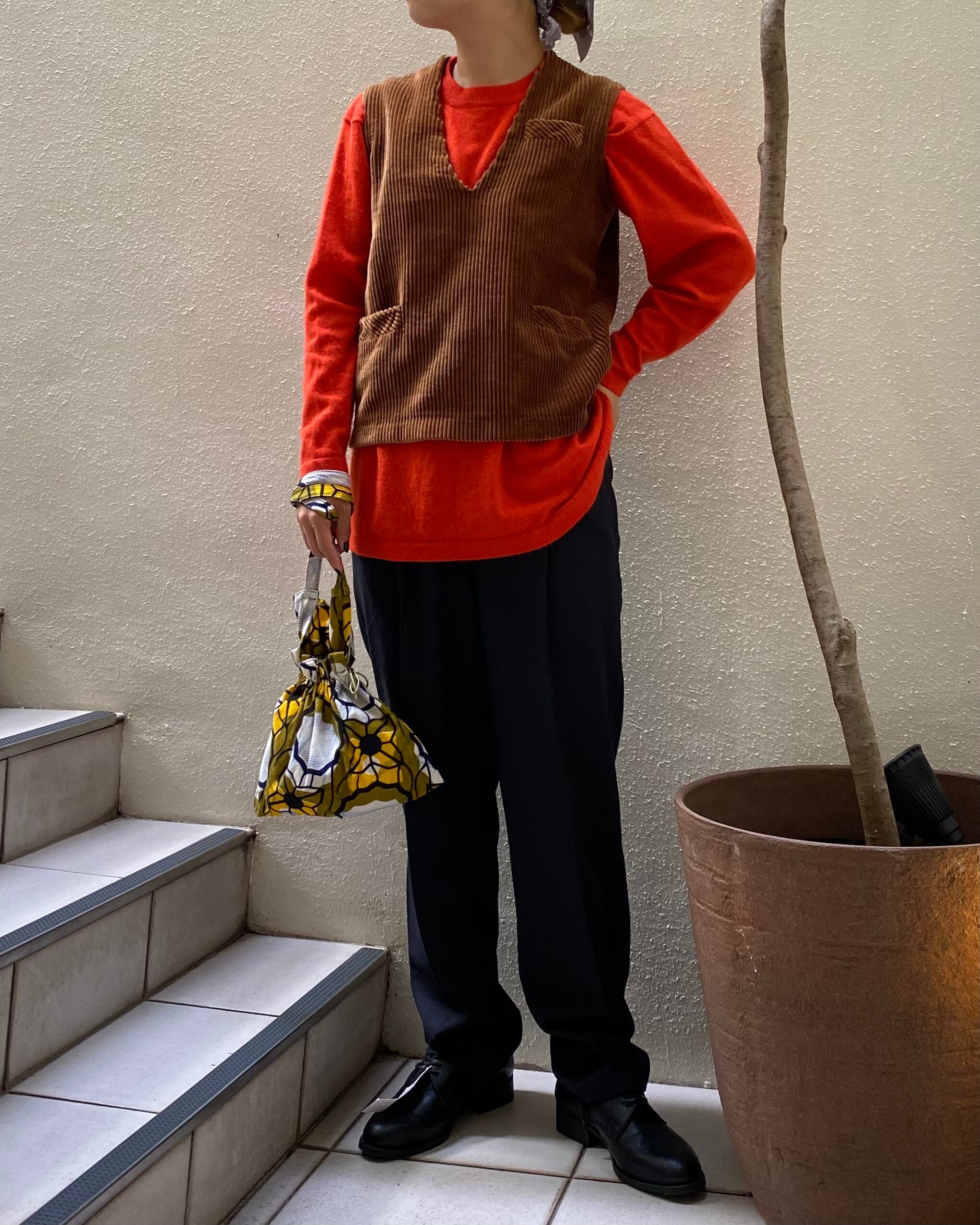 薄手の生地感で穿き心地のいい生地感とシンプルなデザインがマッチした上品な印象。