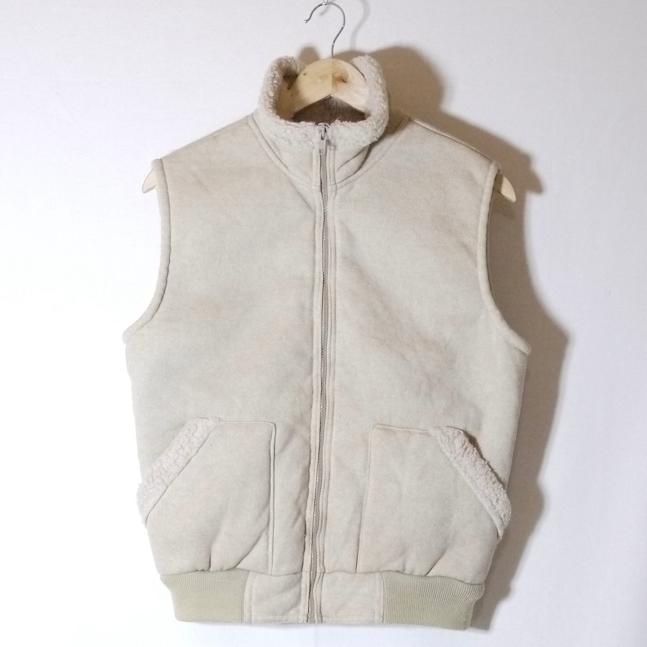 ライトベージュカラーのパイルベスト。