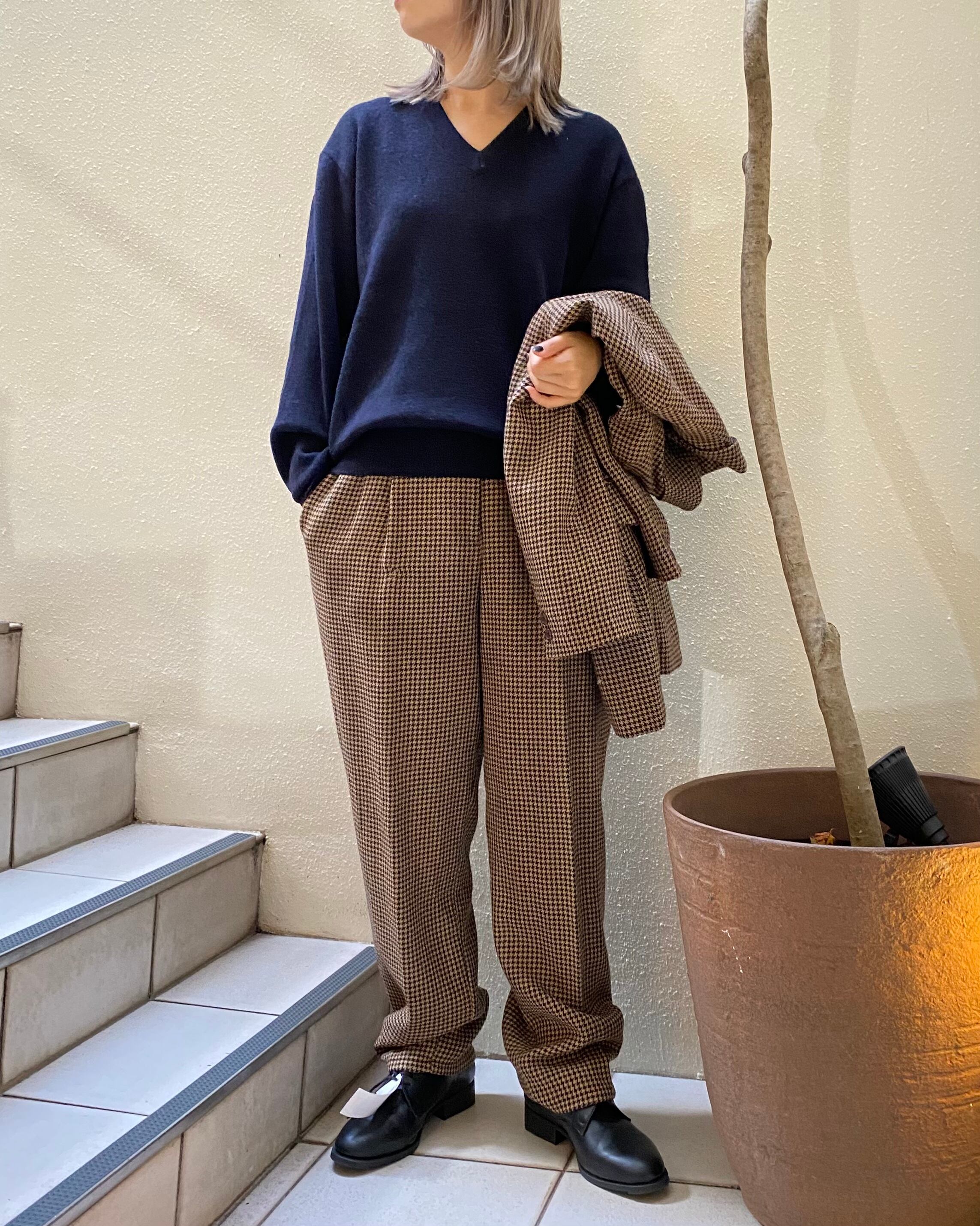 ネイビーカラーのセーター。