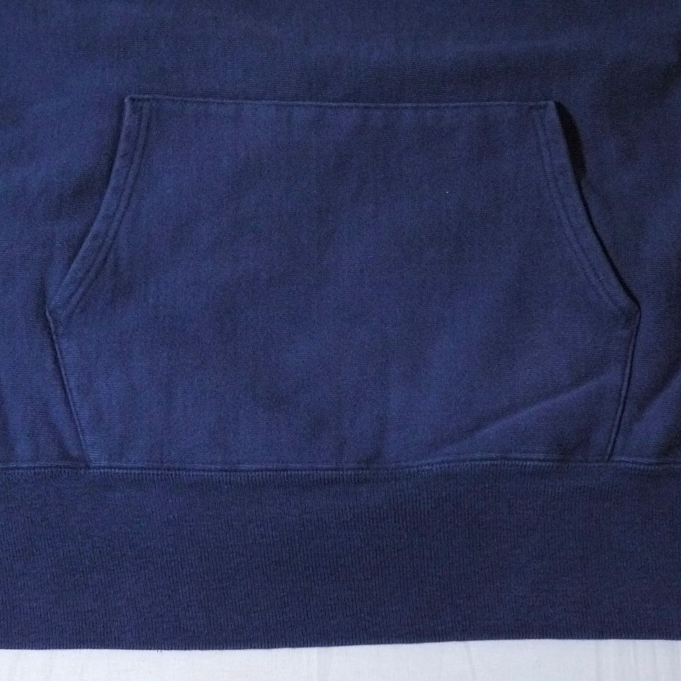 ネイビーカラーのリバースウィーブパーカ。