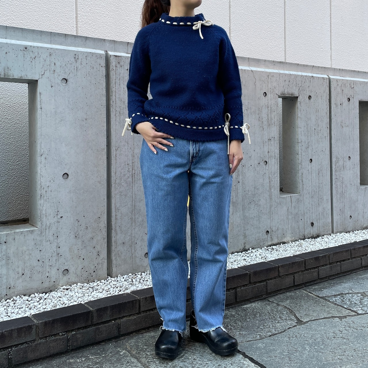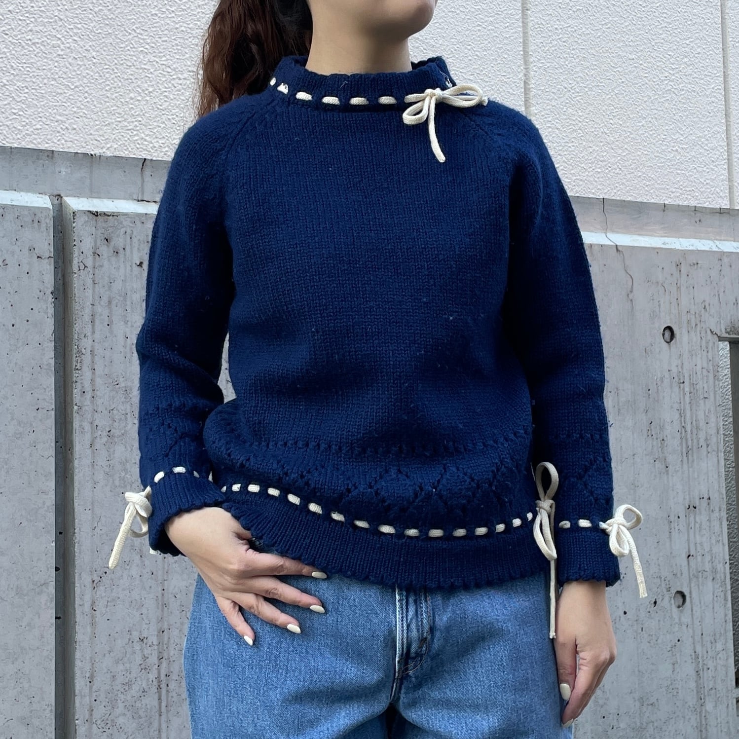 ネイビーカラーのセーター。