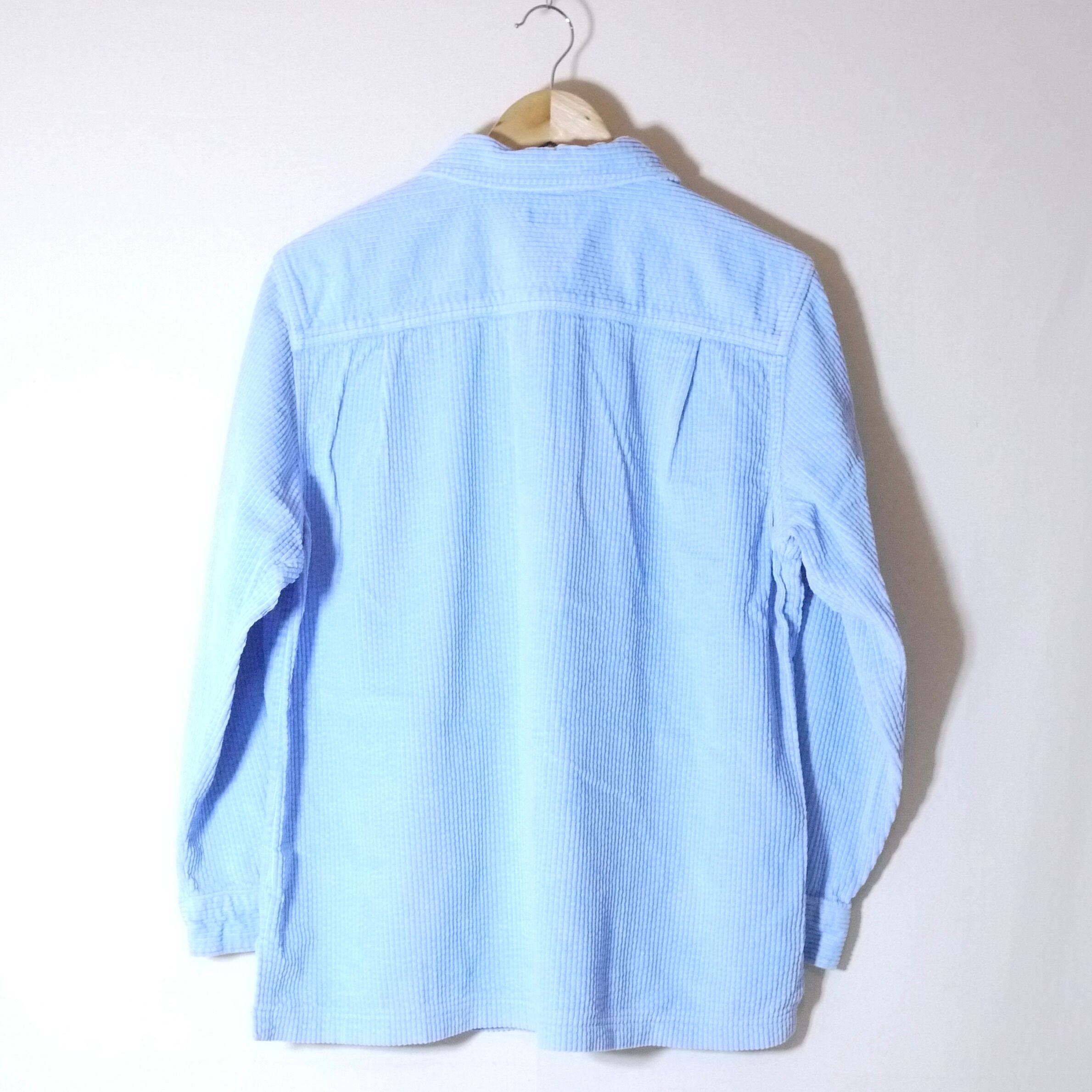 ライトブルーカラーのコーデュロイシャツ。