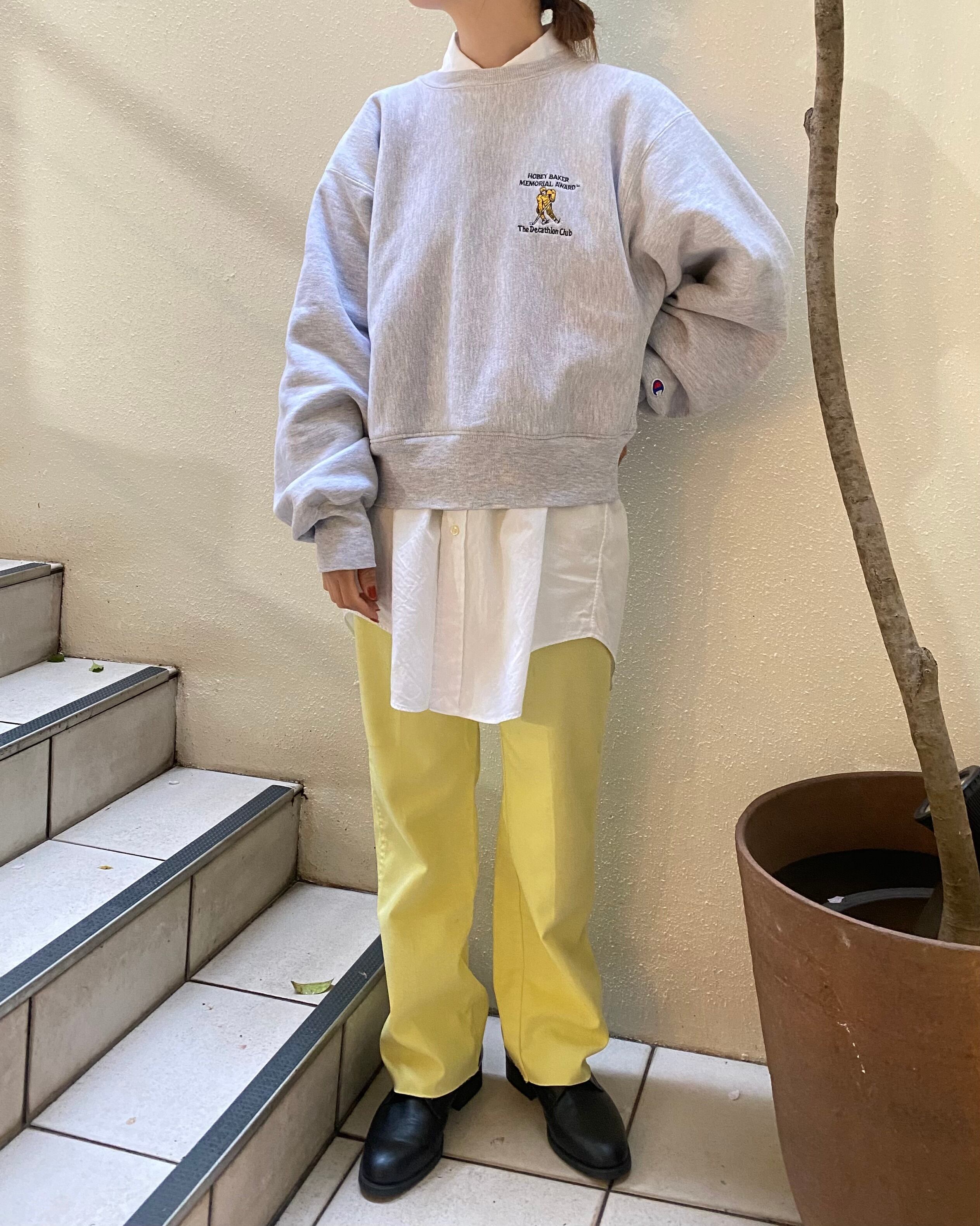 ゆったりとしたサイズ感を活かしてカジュアルな着こなしも首元を広く見せる抜き襟のような着こなしや、肌寒いときに羽織り物としても活躍してくれます。