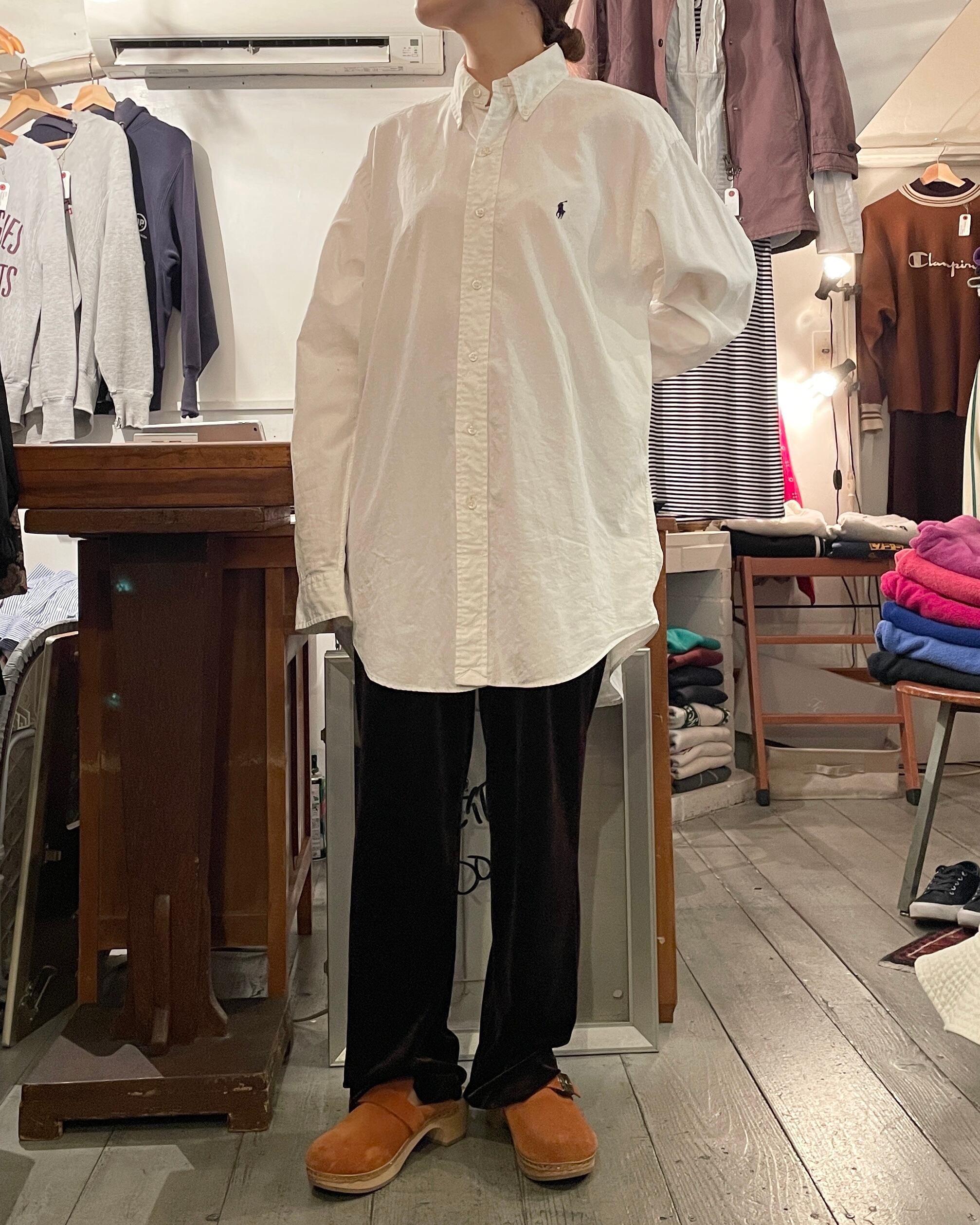 胸にワンポイントのロゴ刺繍が入る定番でシンプルなB.D.シャツ。