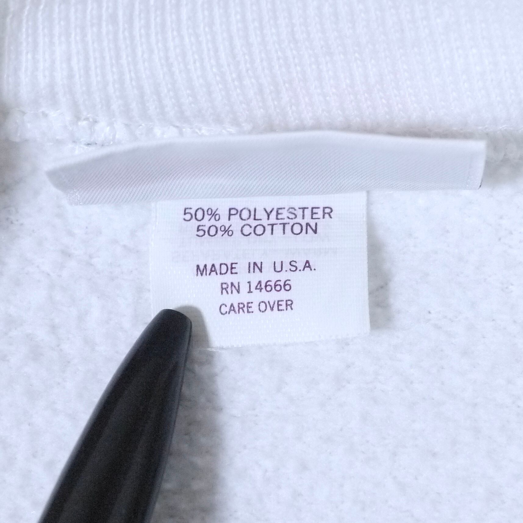 アメリカ製。コットン50%、ポリエステル50%。