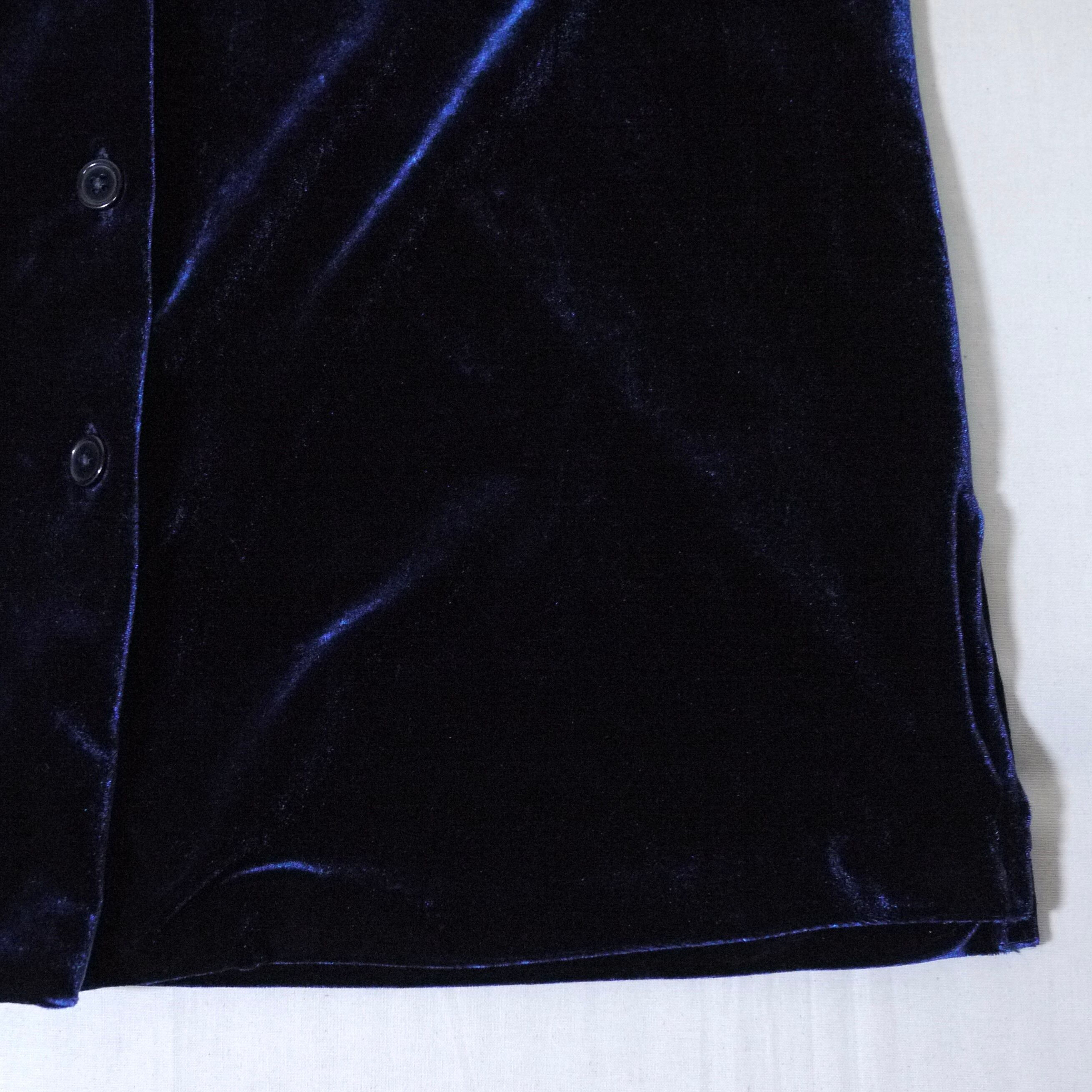 ブルーカラーのベロアシャツ。