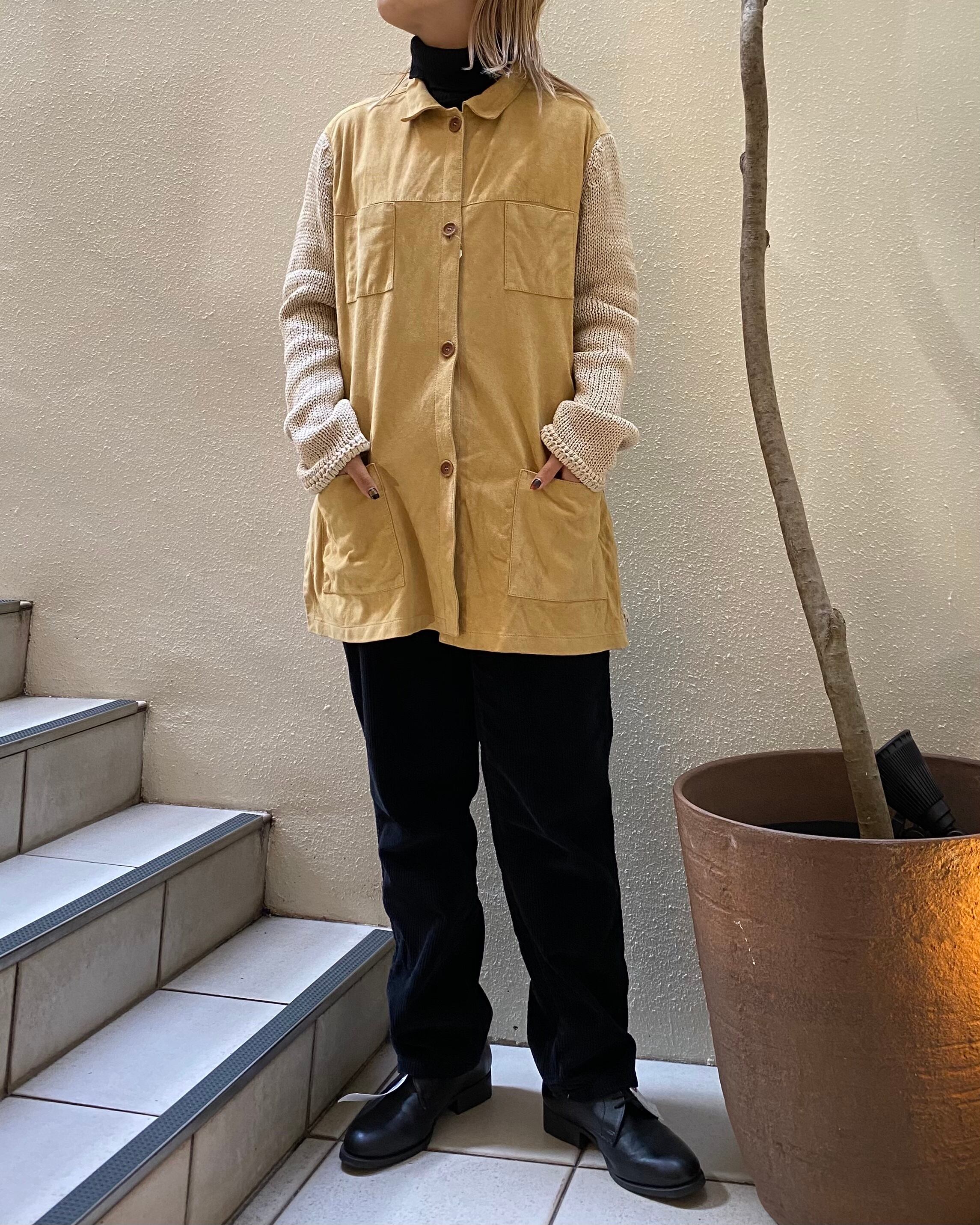 スエードとコットンのような生地感のニットの切り替えデザイン。