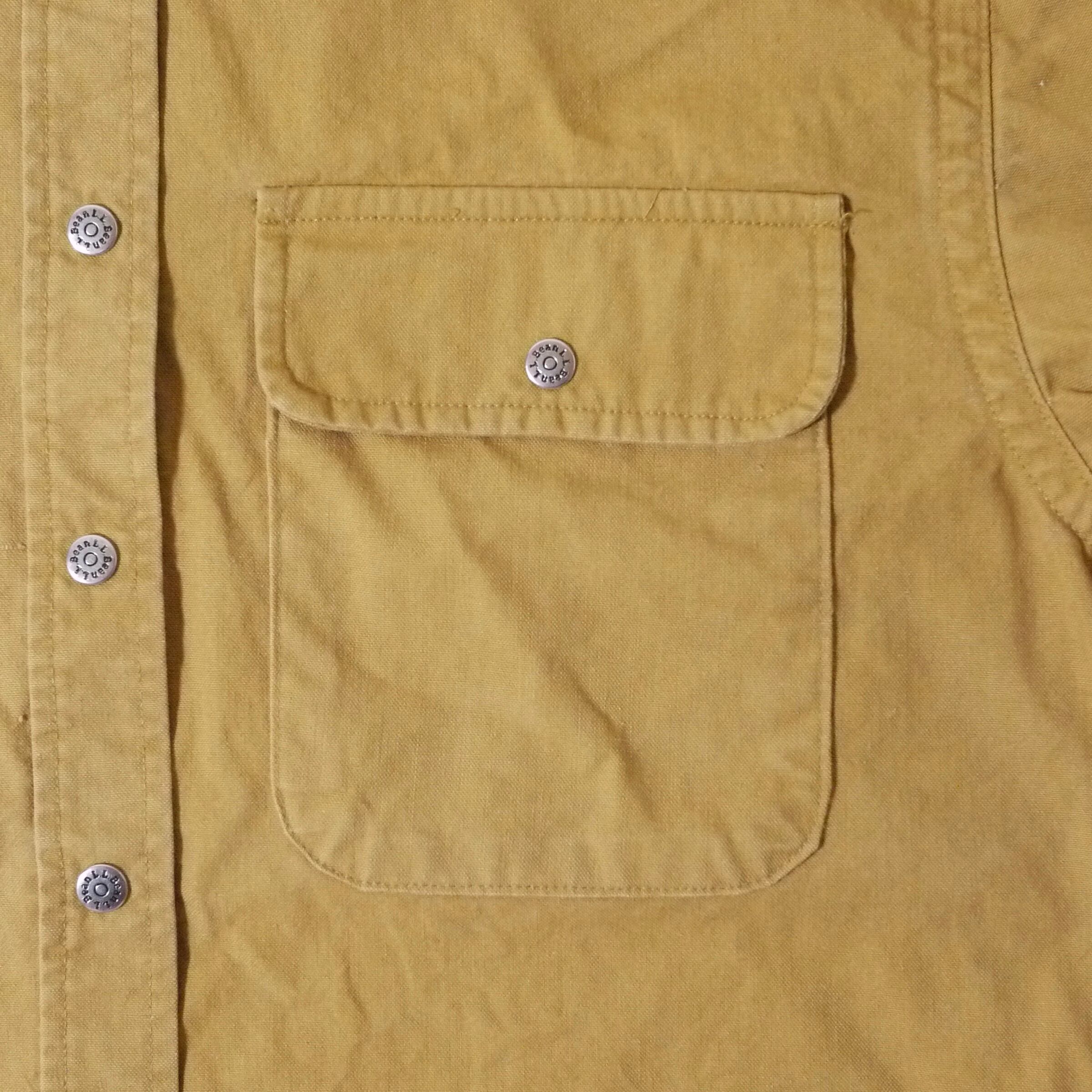 襟と袖口がコーデュロイ地、ブランド刻印入りのスナップボタンといったディテールが丁寧な作り。