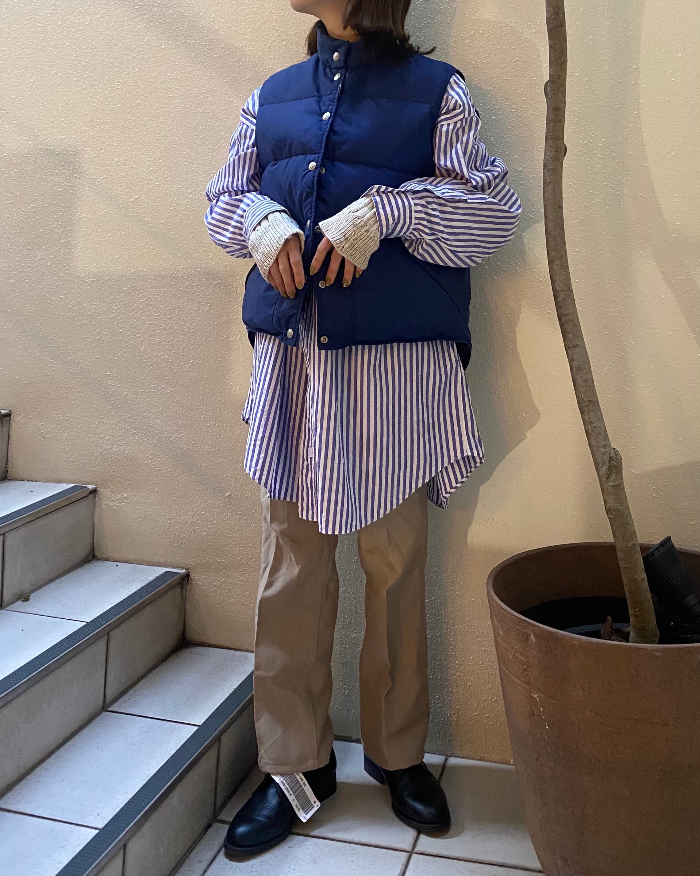アメリカ製。シェルはナイロン100%、インサレーションはグースダウン。ブランド刻印入りスナップボタン。