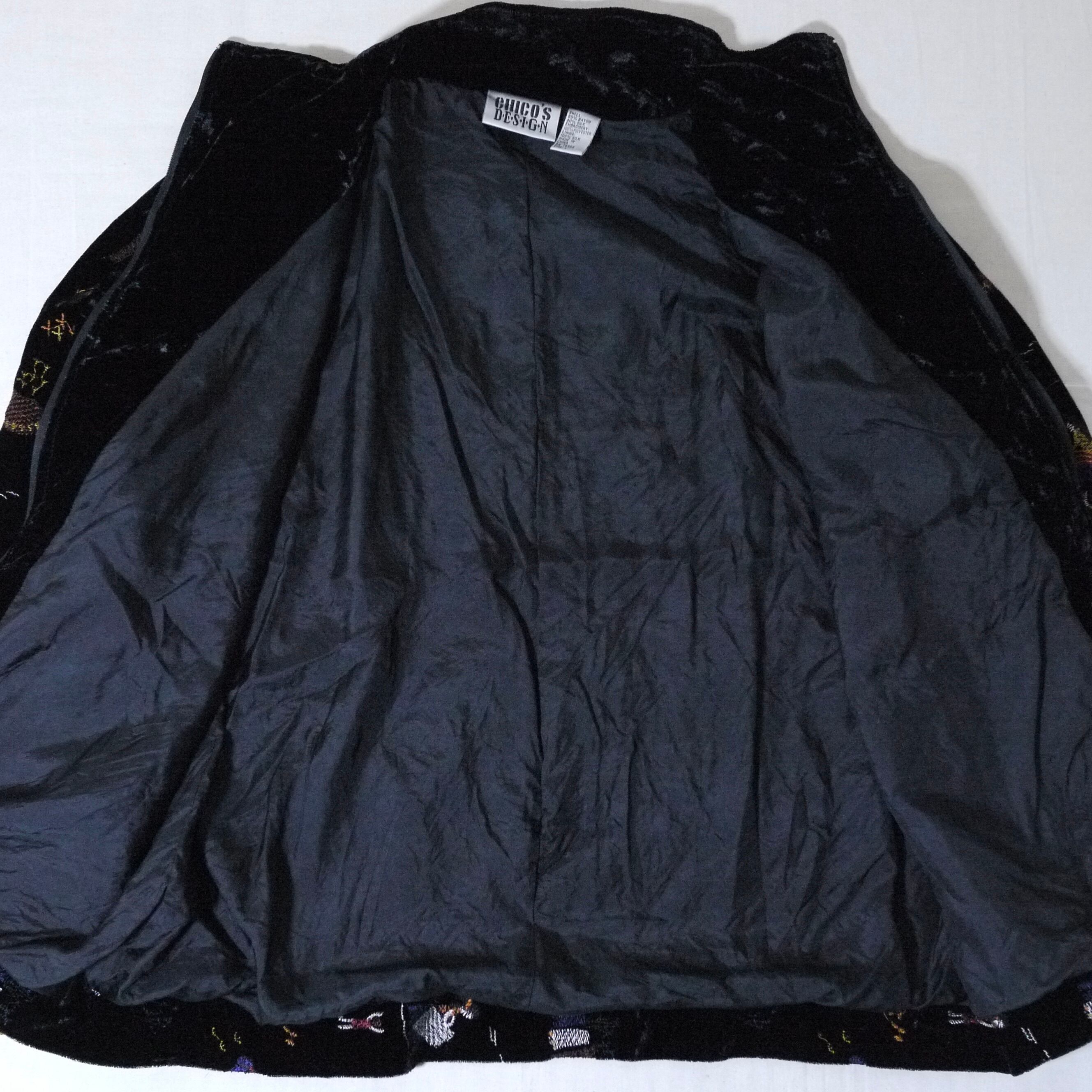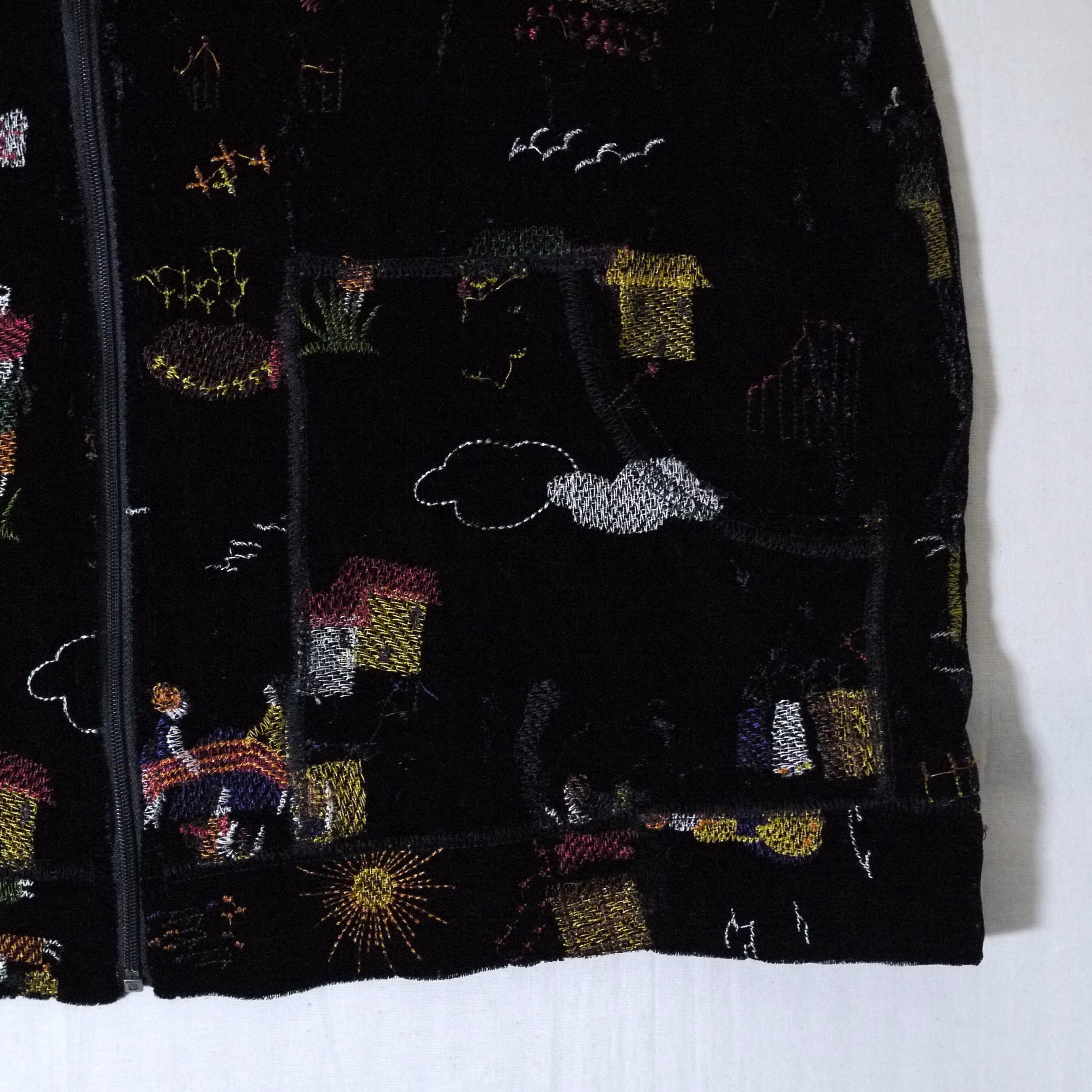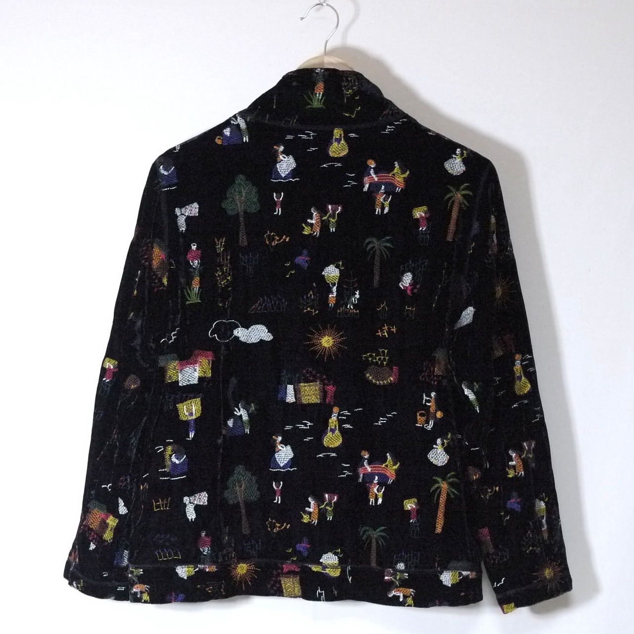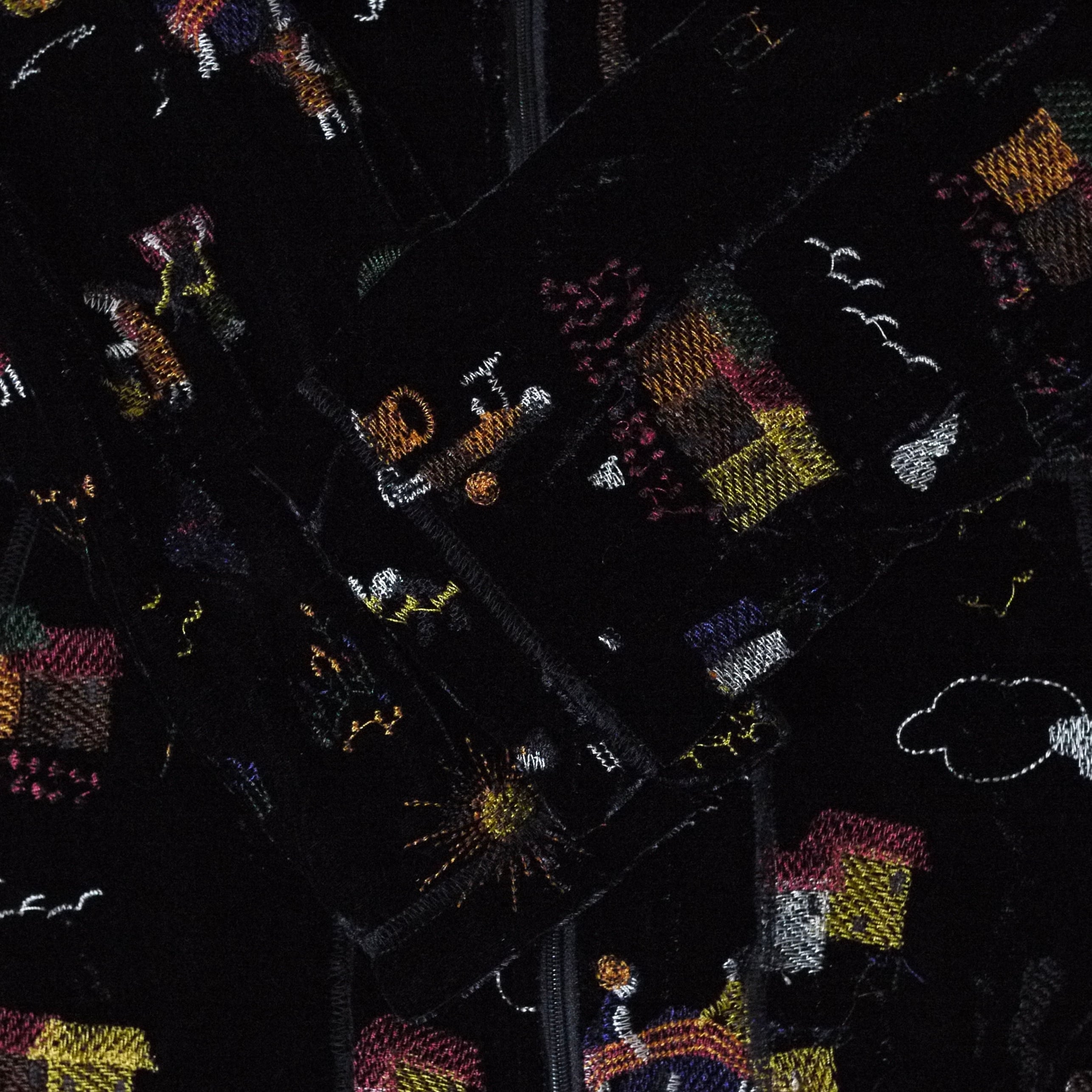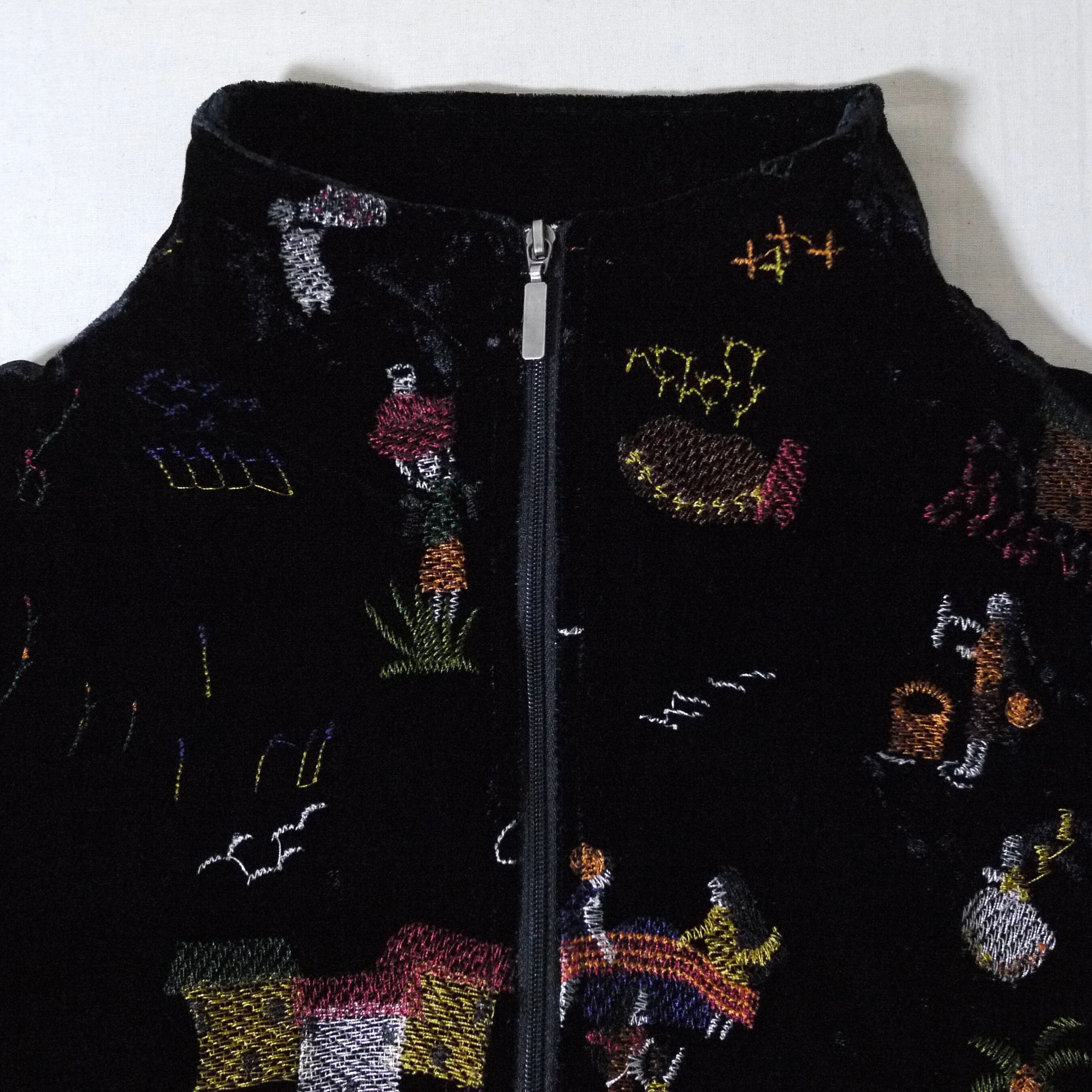 ブラックカラーのボディに映えるカラフルな刺繍デザイン。
