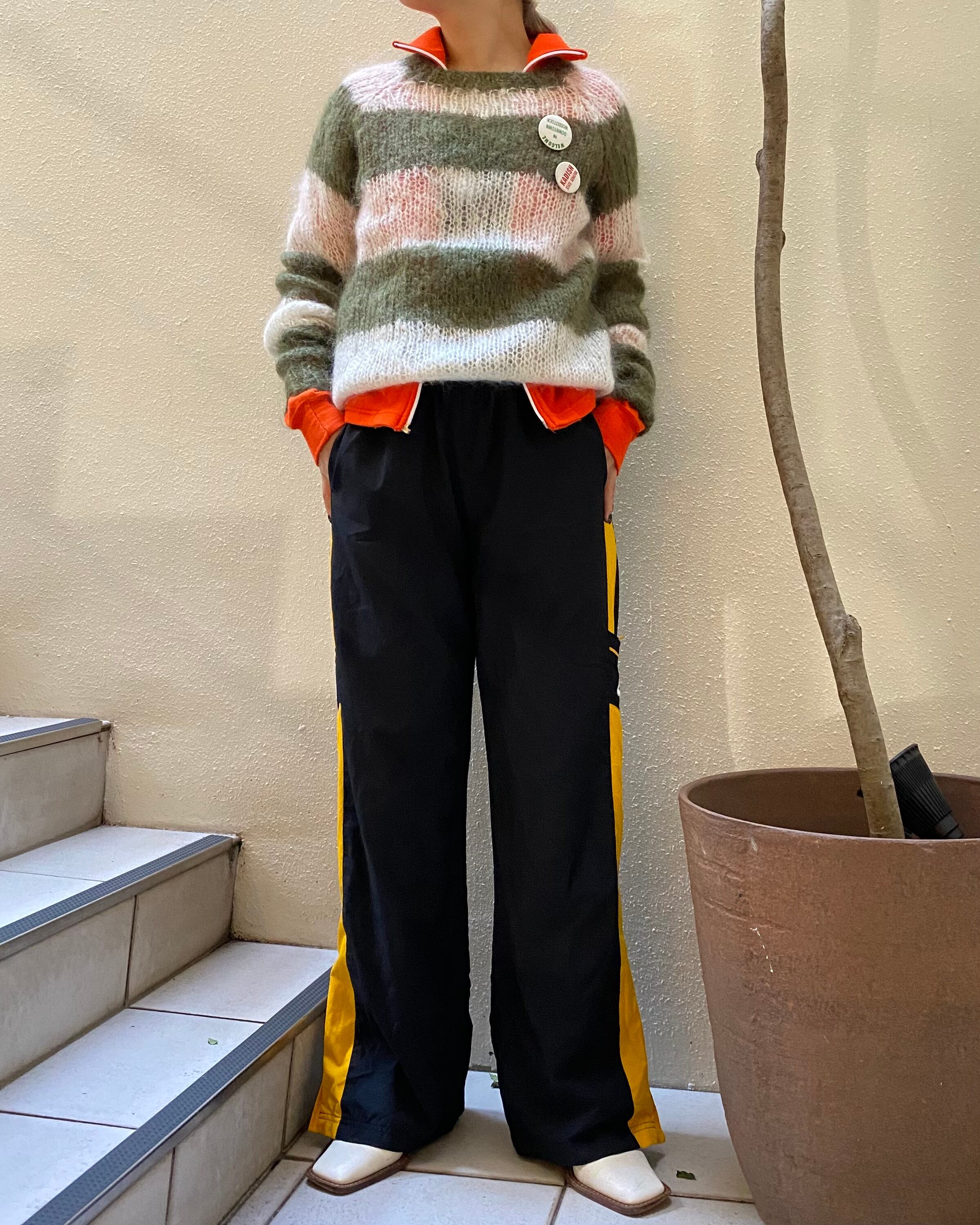 オレンジカラーのトラックジャケット。