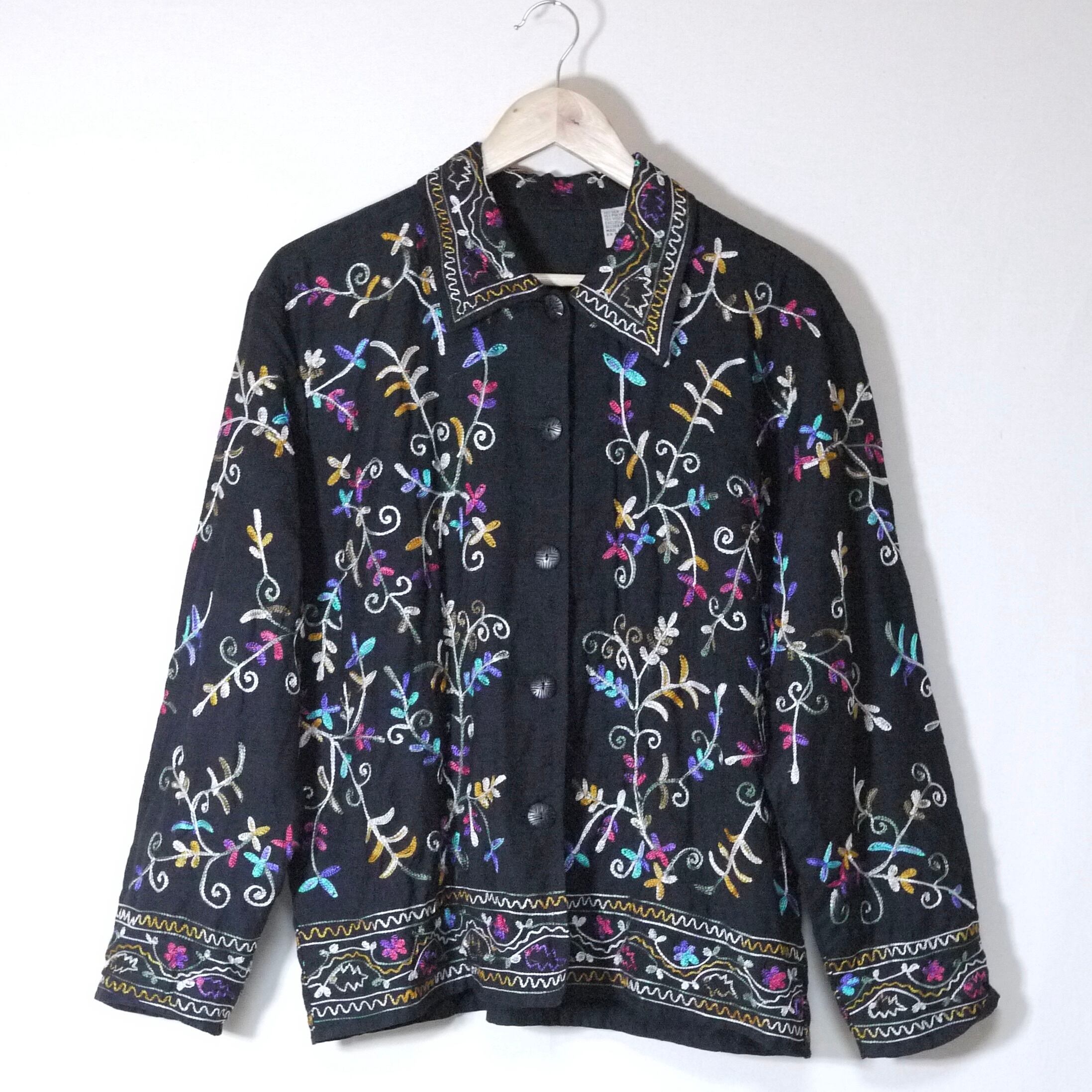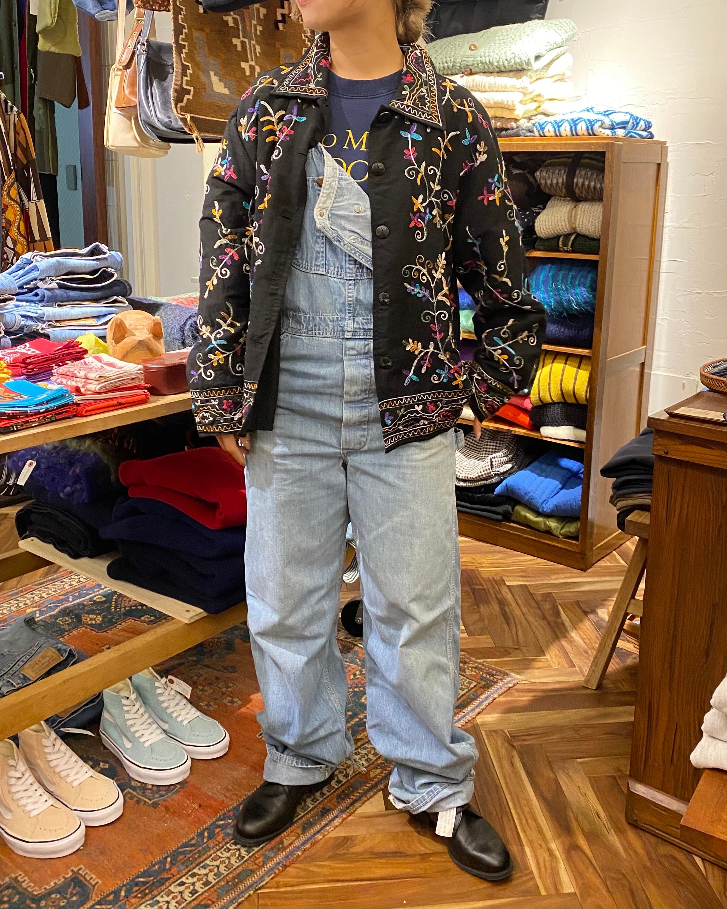 カラフルなチェーンステッチの刺繍デザインが映えるアイテム。