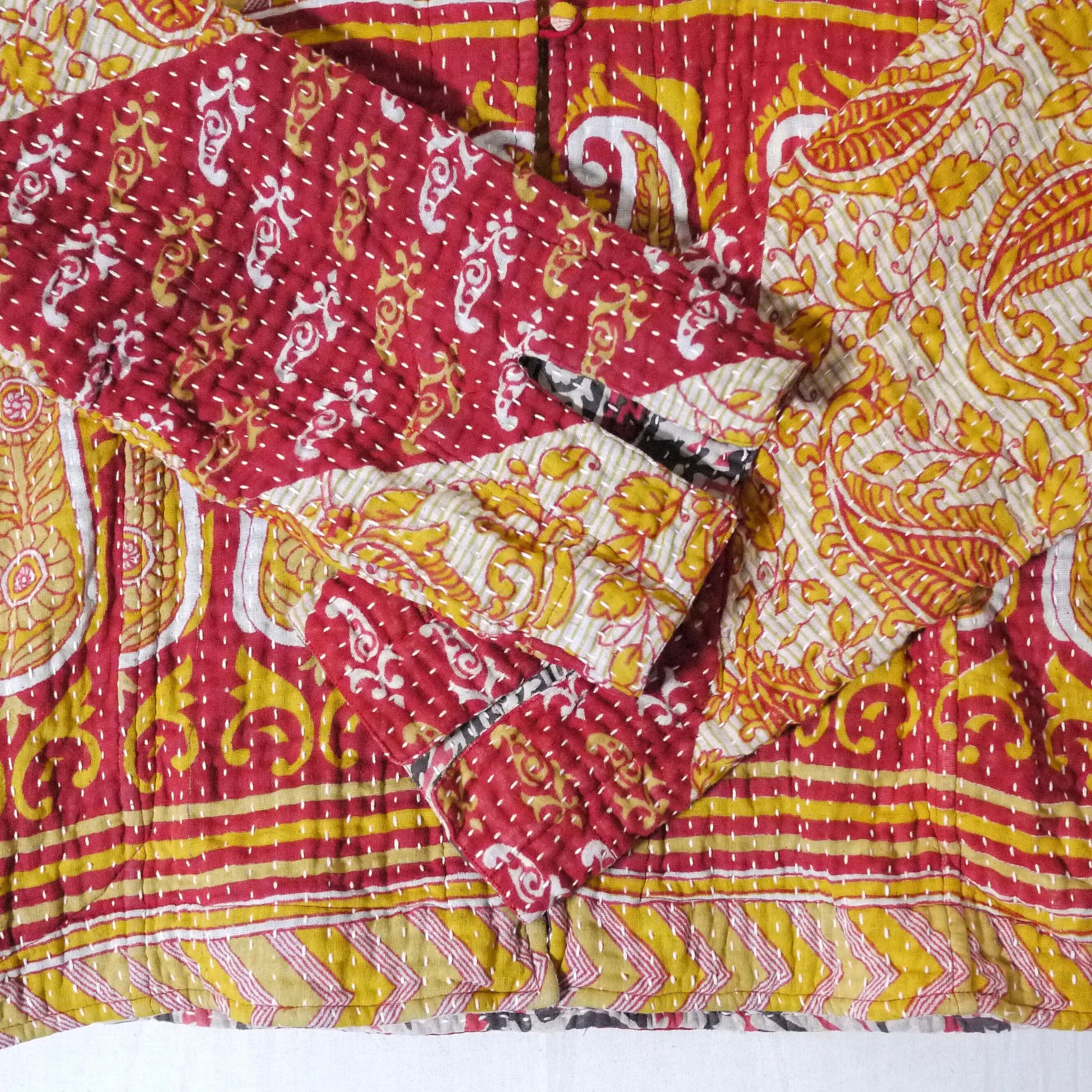 レッド、オレンジカラーがベースの刺繍ジャケット。