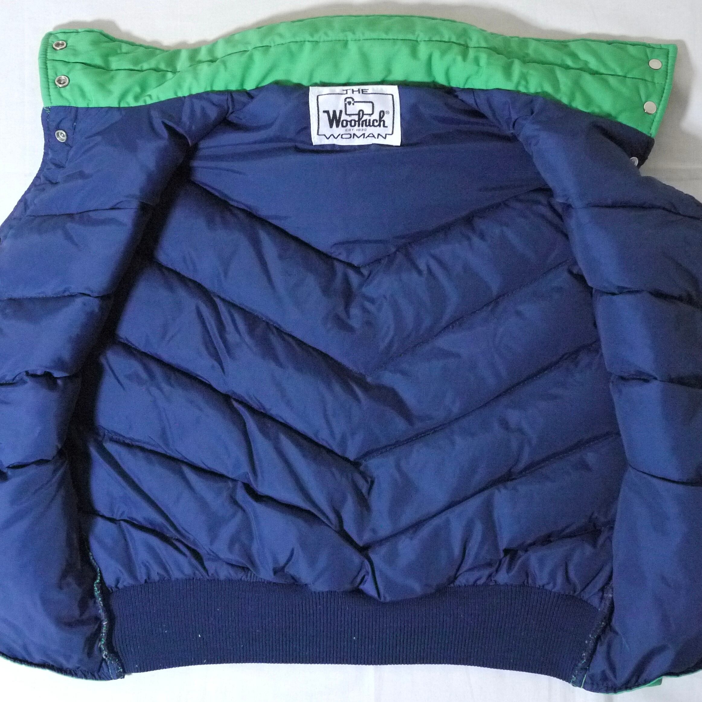 品質表記タグ欠損のため詳細不明ですが、恐らく、シェルはポリエステル/コットン、インサレーションはダウン。ブランド刻印入りスナップボタン。