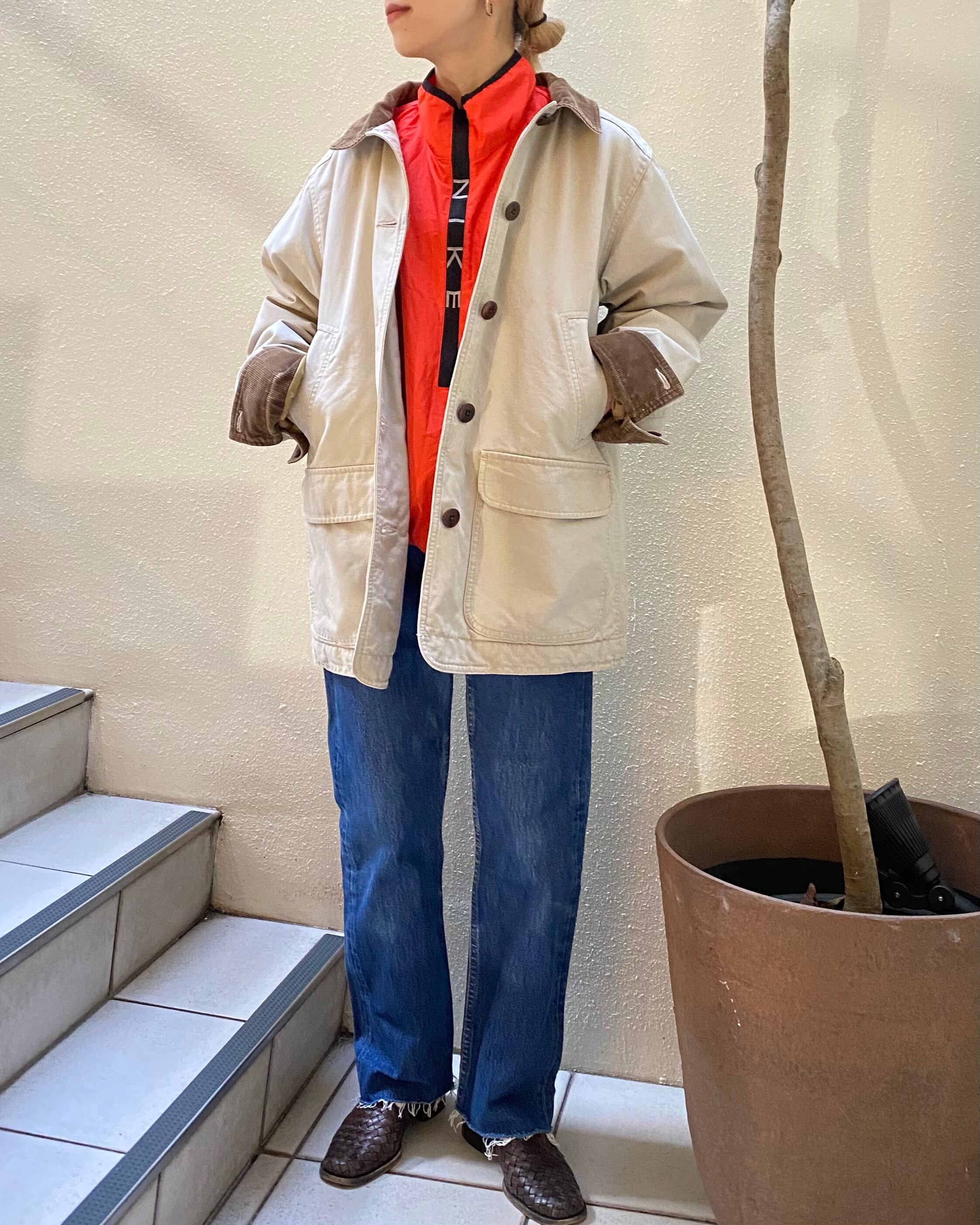 コーディネートのアクセントになる蛍光カラーで、これからの季節には中間着としてレイヤードもオススメ。